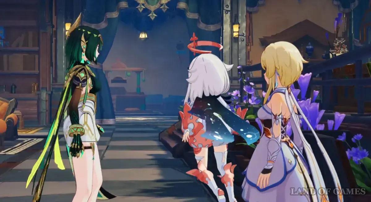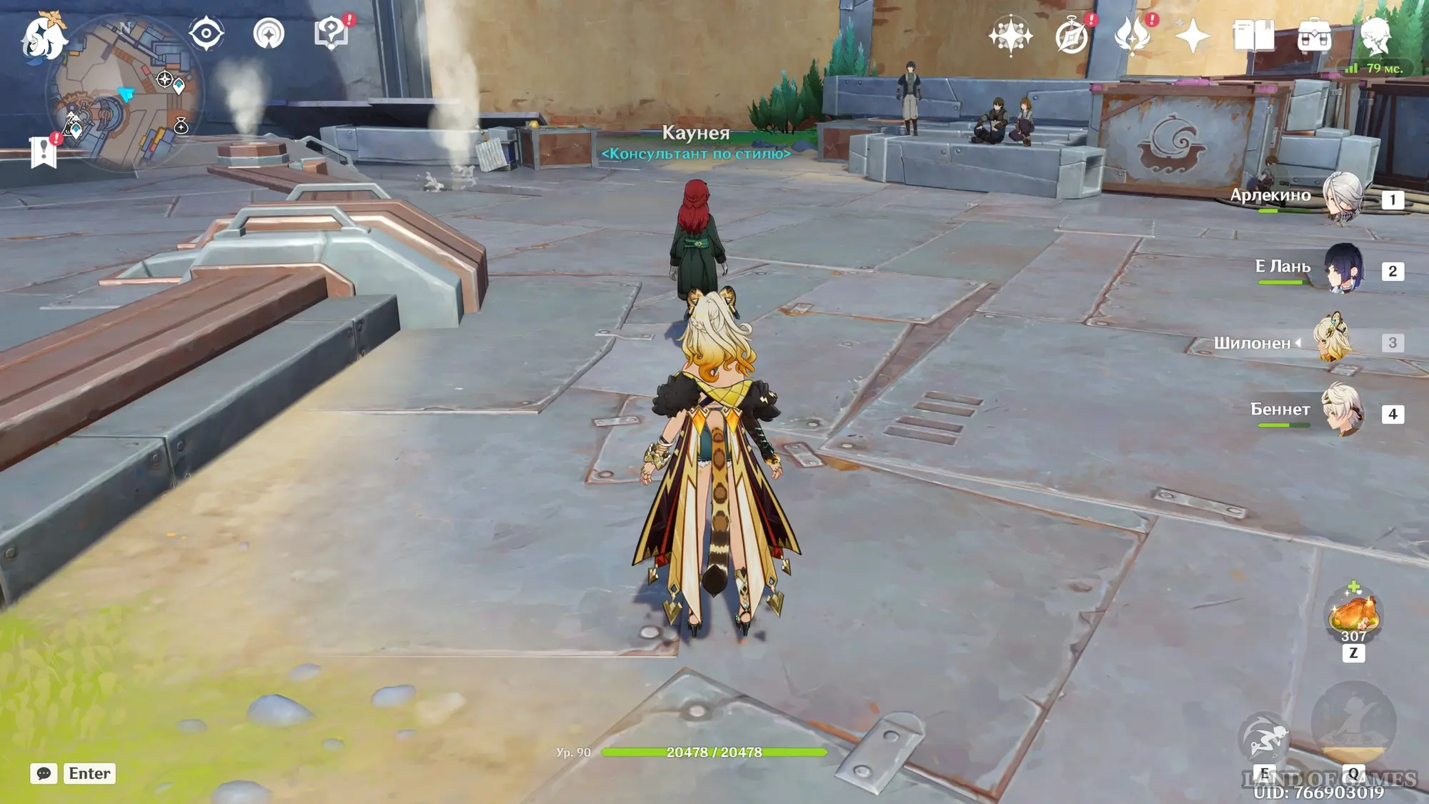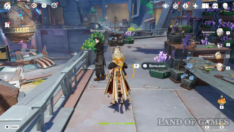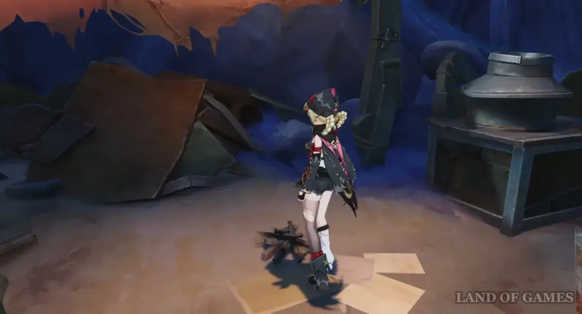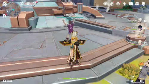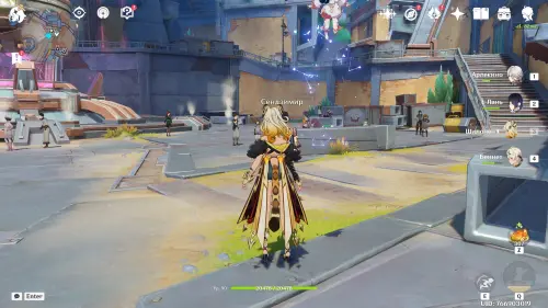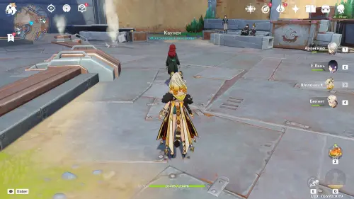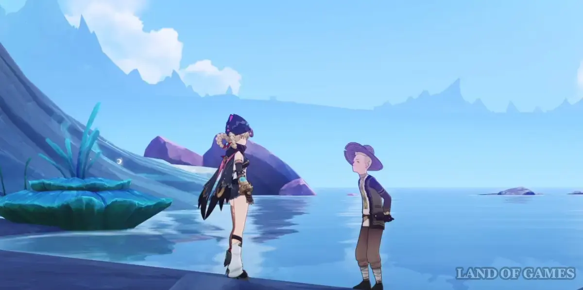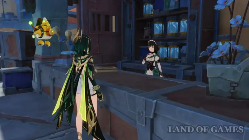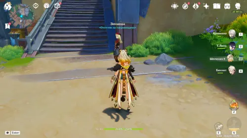 Поверните направо от торговца, и вы заметите делающего зарядку исследователя из Натлана. Он интересуется Детьми Морозной Луны и с ним связан один из личных квестов Нефер – «Исследование утечек».