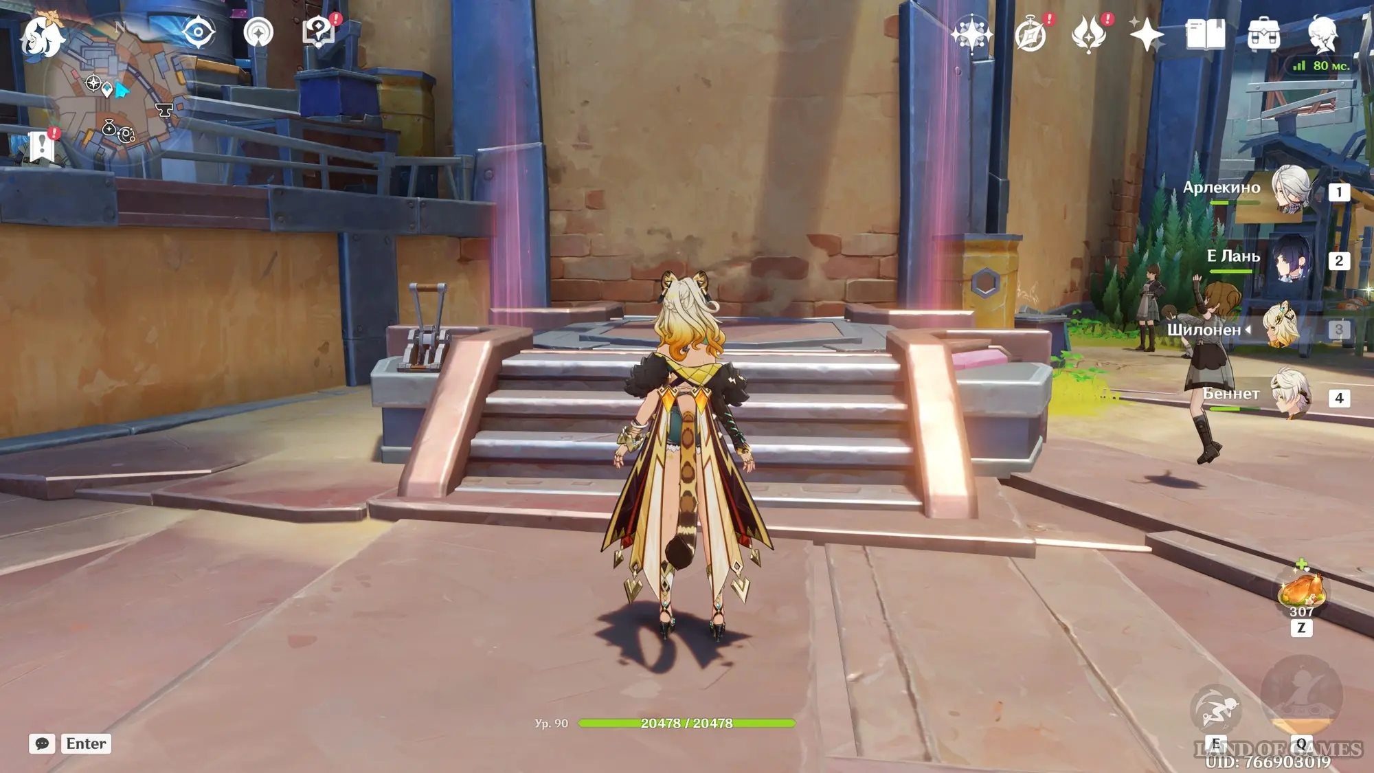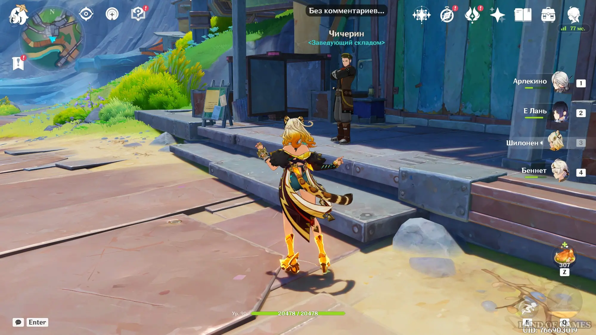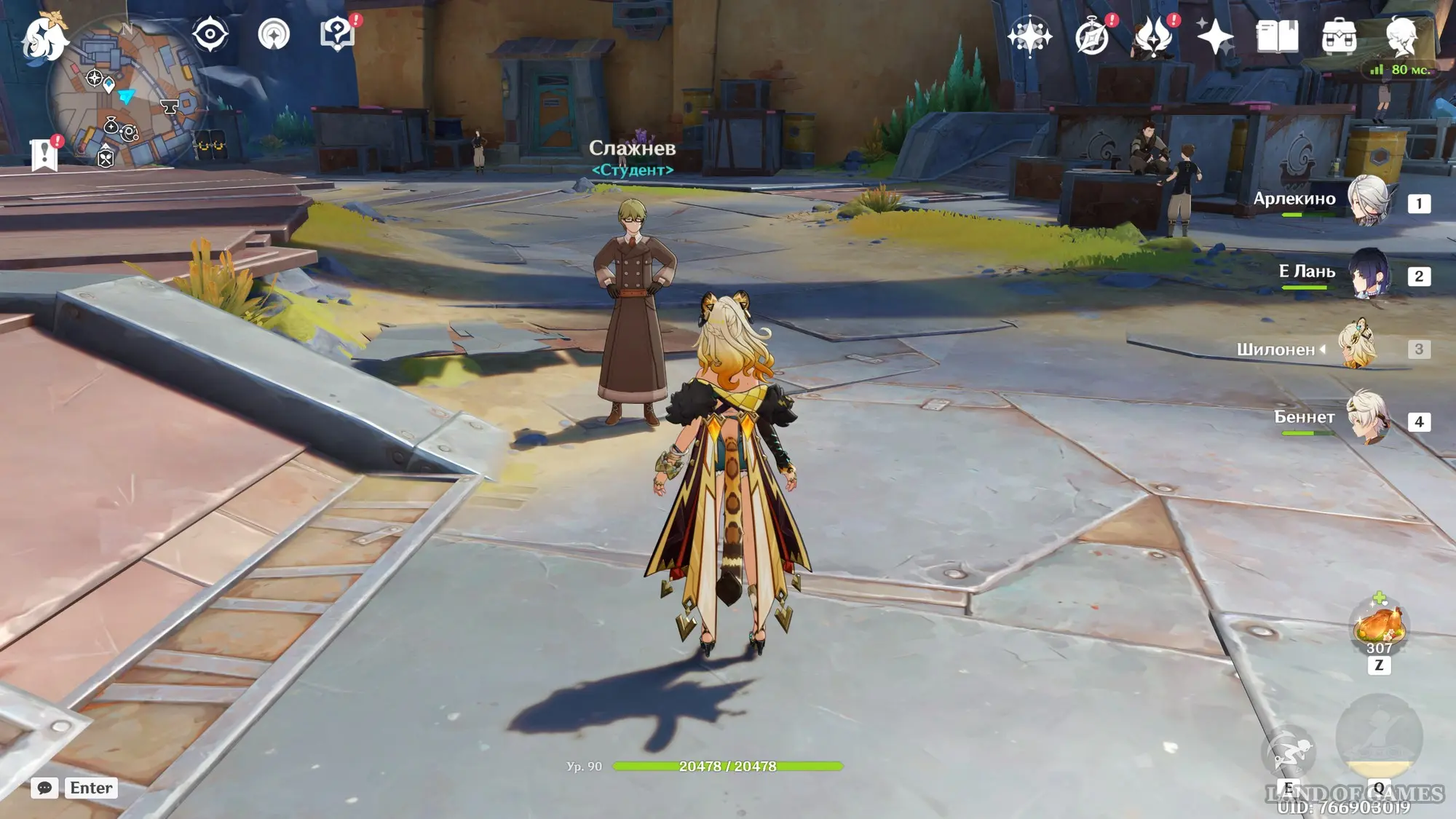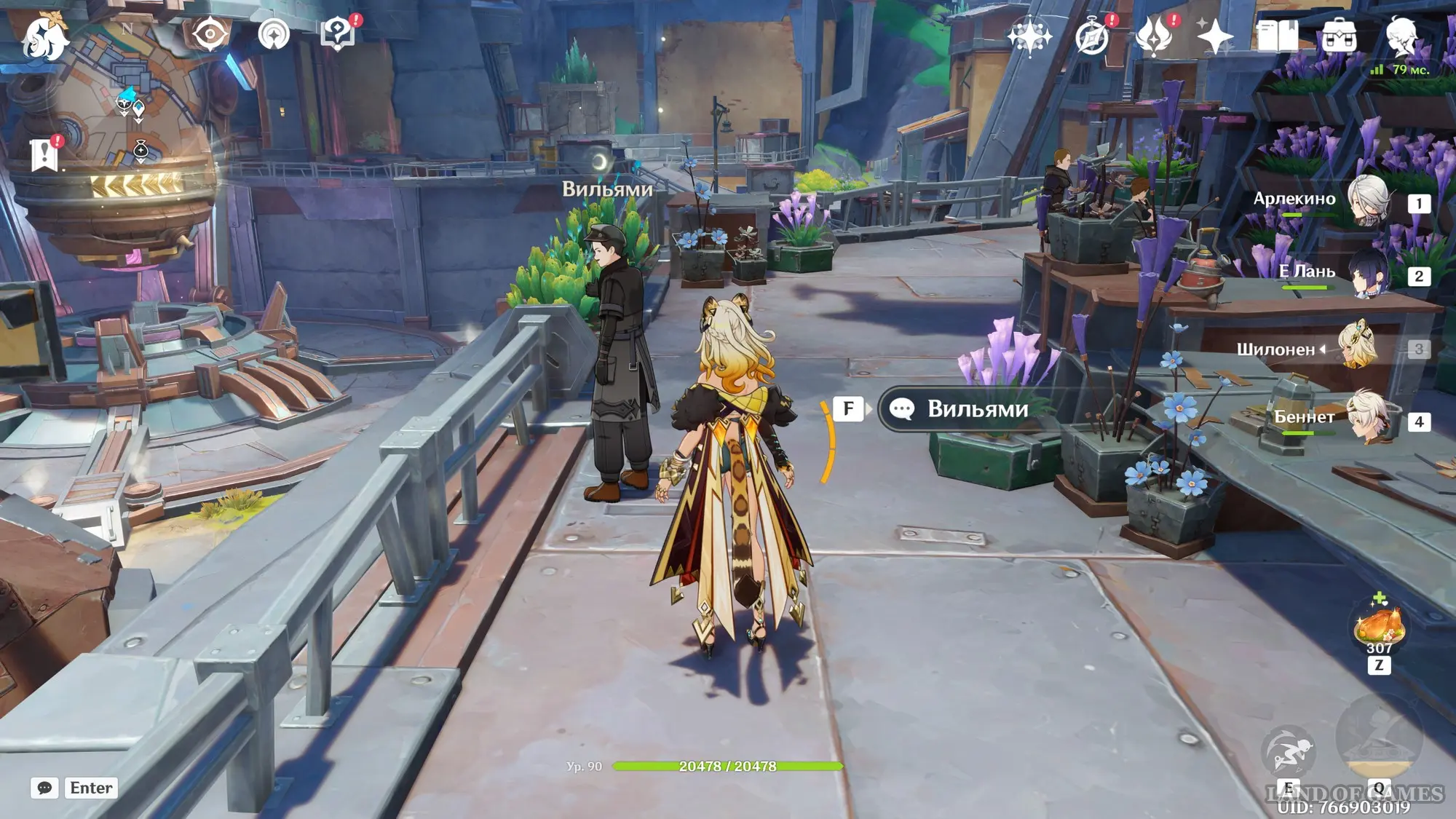 Поверните направо от торговца, и вы заметите делающего зарядку исследователя из Натлана. Он интересуется Детьми Морозной Луны и с ним связан один из личных квестов Нефер – «Исследование утечек».