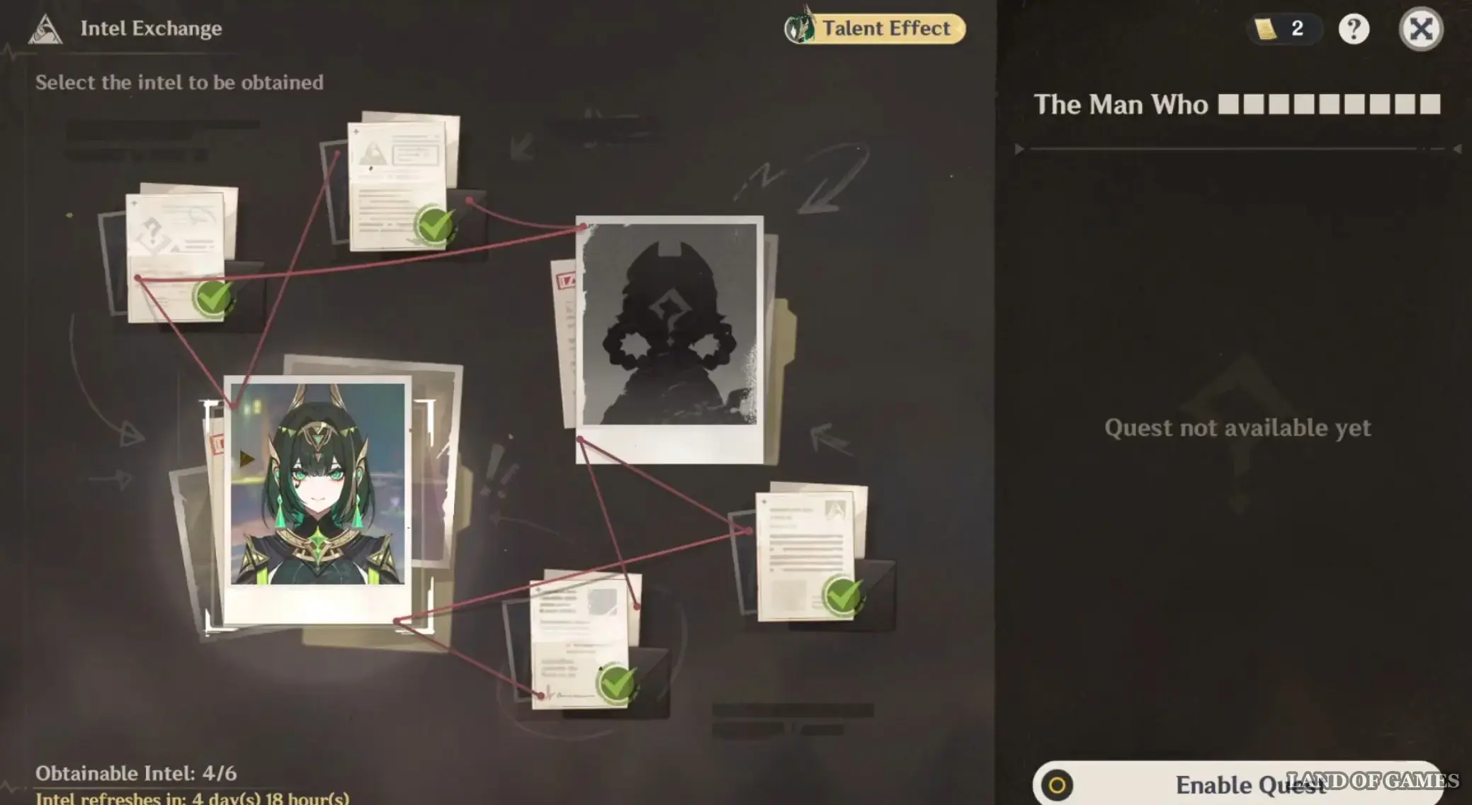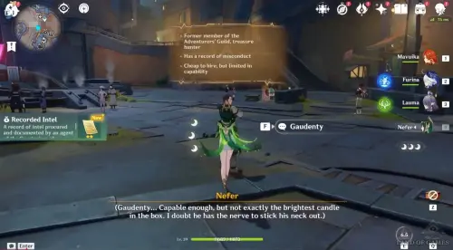 Добавьте одного из указанных выше персонажей в свою команду и выберите его, а затем подойдите к определенному персонажу, над головой которого висит небольшой золотой треугольник, и нажмите рядом с ним кнопку элементального умения (клавиша «Е» на ПК). После этого вы тут же должны будете получить 1 единицу записанных разведданных и увидеть табличку с различной секретной информацией об NPC.