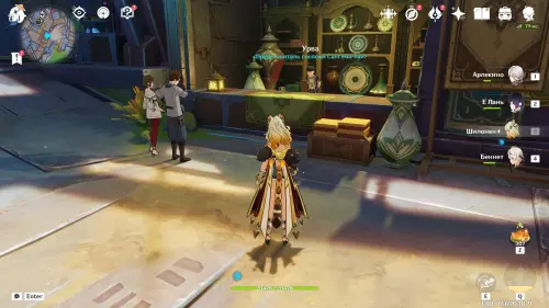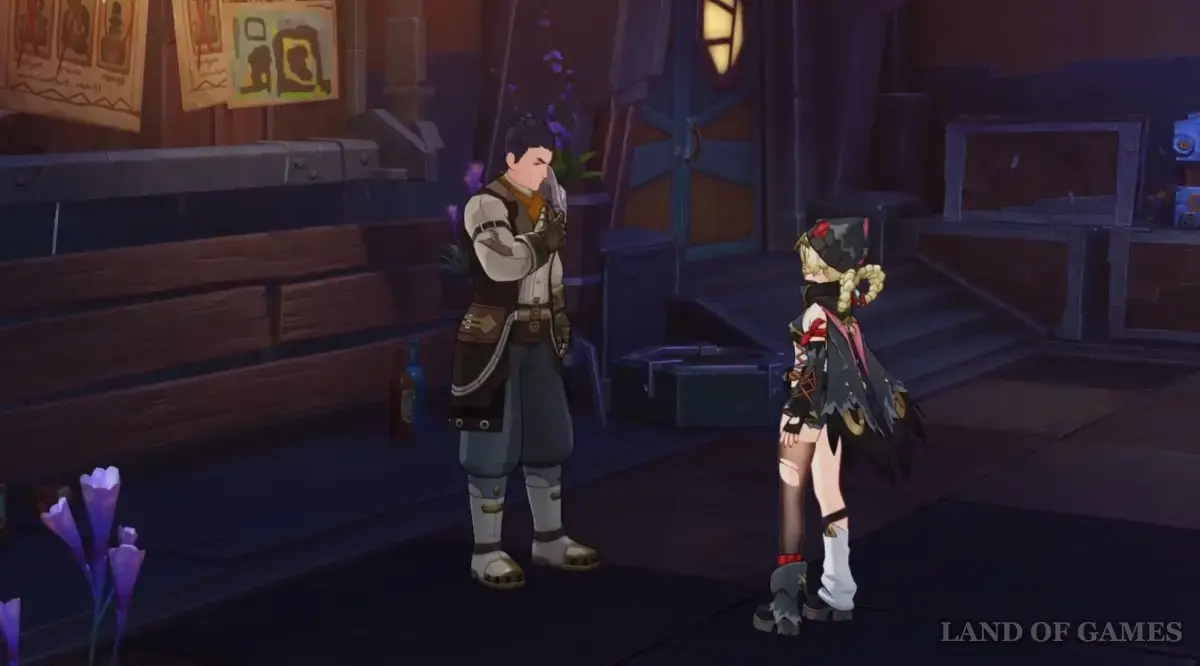 Теперь войдите в бар «Флагман» и бегите к его противоположной стороне, и за стойкой вы найдете вербовщика Фатуи по имени Кручек. Он ищет персонал для Экспериментального конструкторского бюро куувяки.