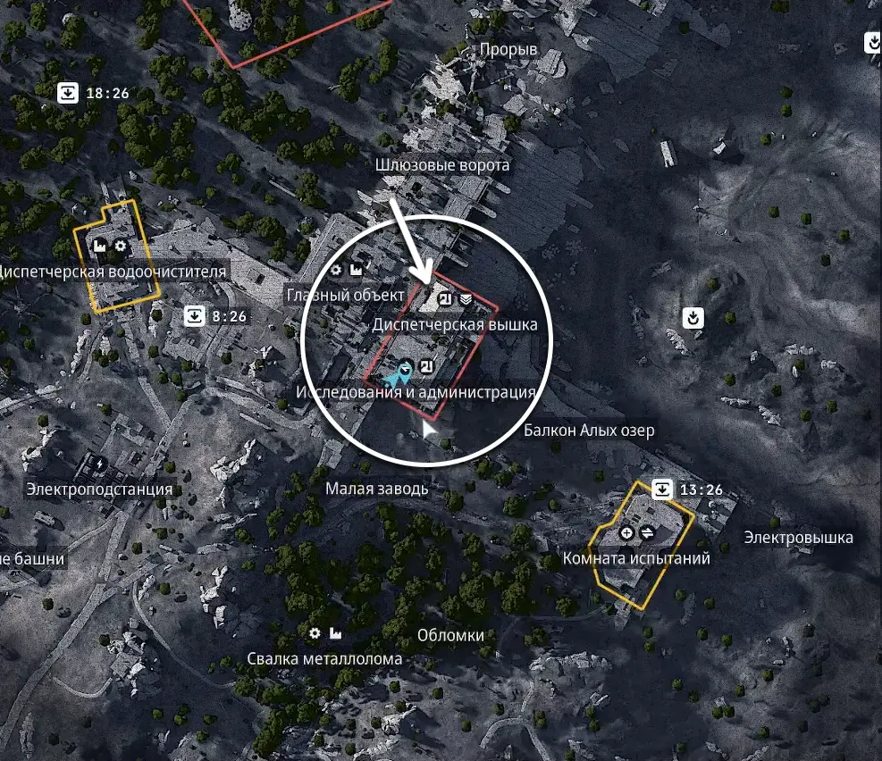 Что открывает: центральную диспетчерскую в башне управления. Дверь расположена на верхних уровнях, подъем возможен через зиплайн внутри.