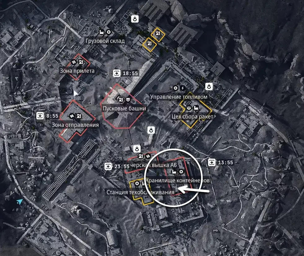 Что открывает: помещение возле Диспетчерской вышки. Это небольшая комната с ящиками редкого уровня. Находится по центру локации. Чтобы попасть в комнату, используйте два зиплайна на внешней стороне – они поднимут вас на самый верх.