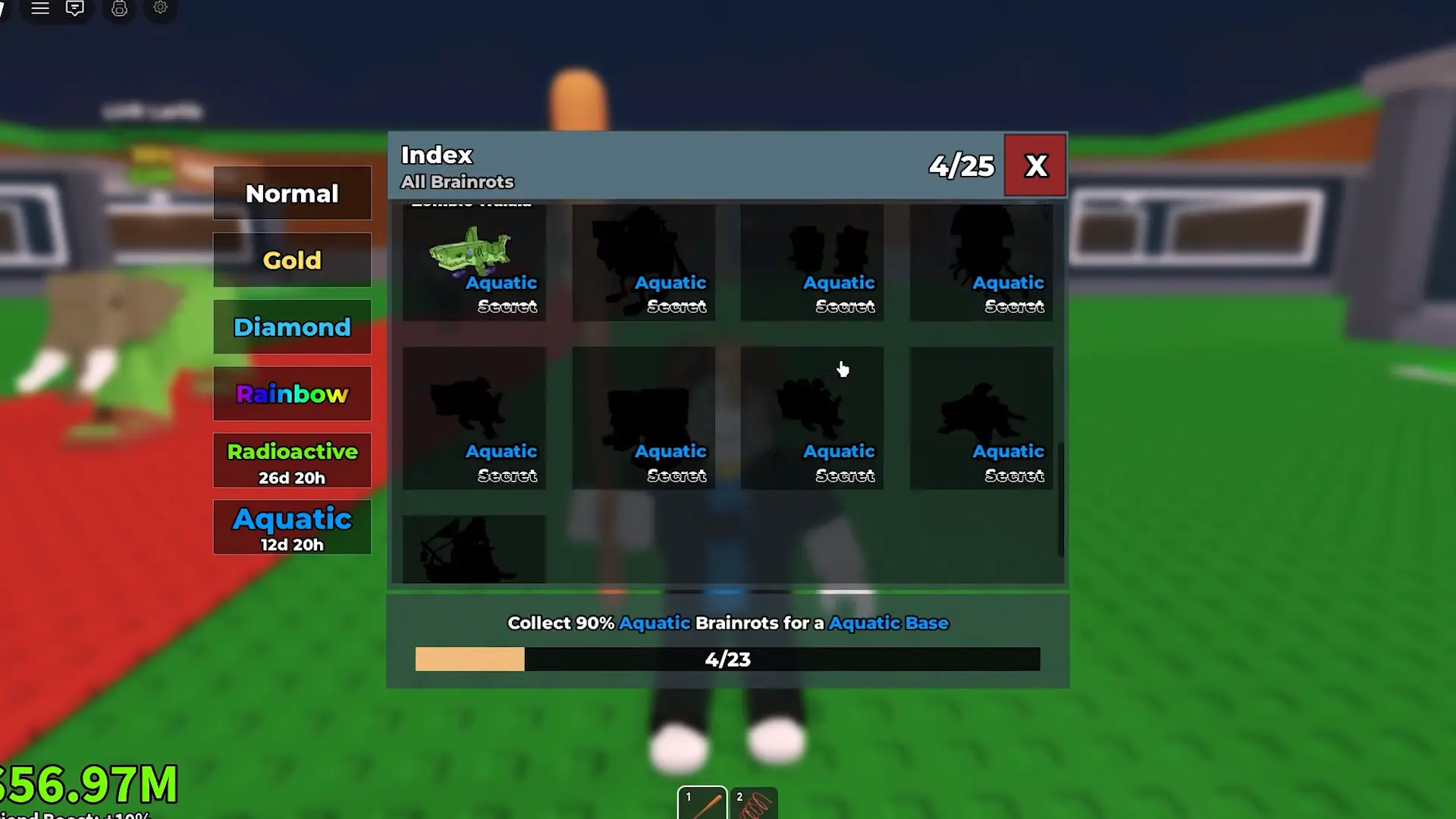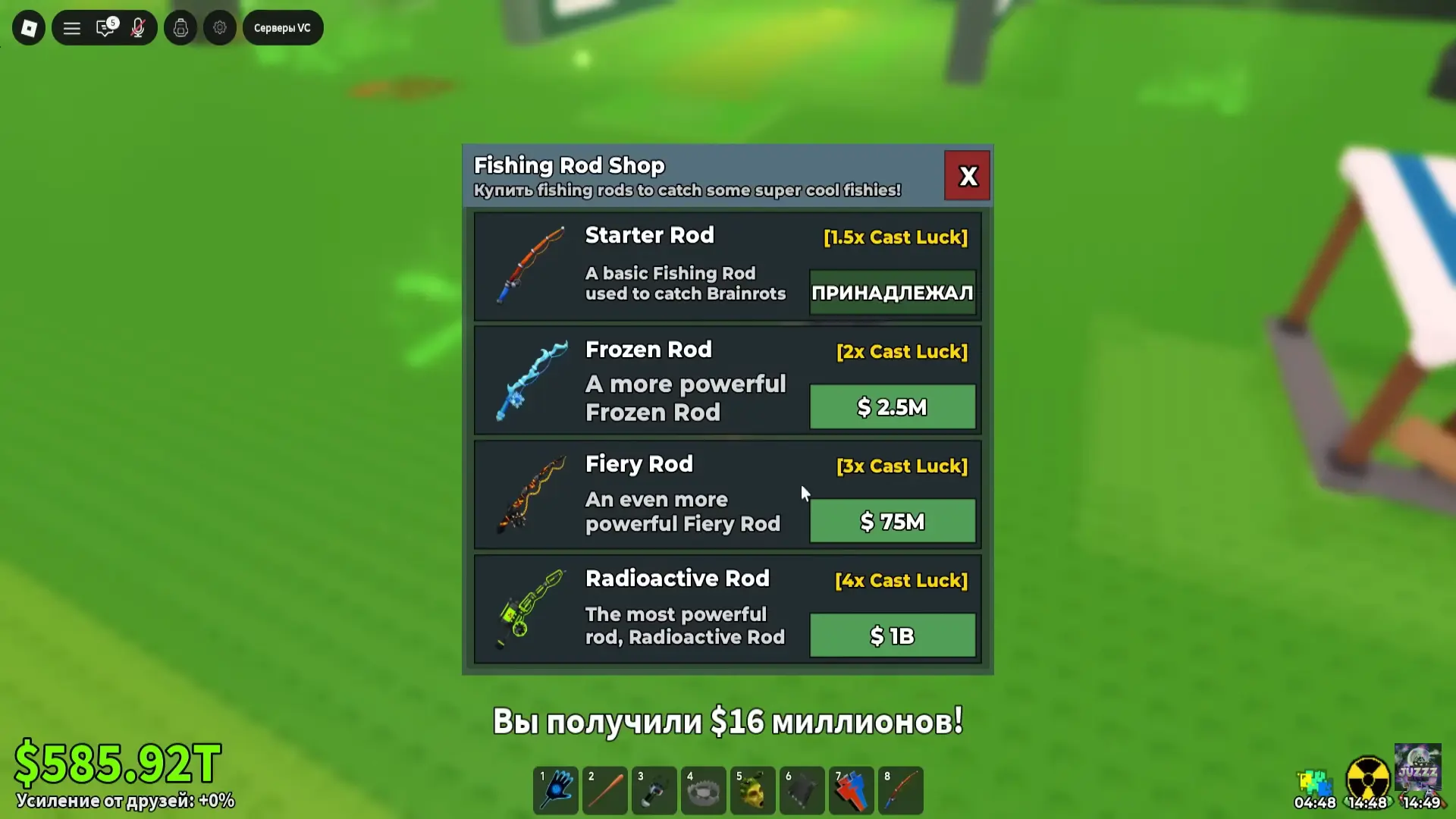 Каждая удочка имеет множитель удачи. Этот параметр не гарантирует выпадение редкого брейнрота, но ощутимо повышает шансы при идеальном забросе. Стартовый инструмент доступен всем без предварительных условий и дает базовый множитель в полтора раза. Остальные модели требуют определенное число перерождений и значительно увеличивают вероятность ценных поимок.