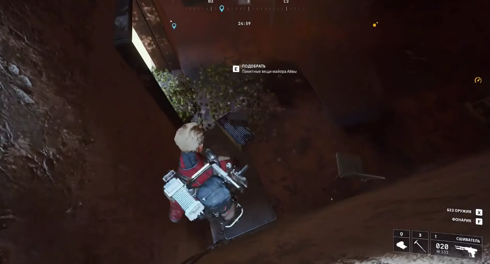 Далее двигайтесь в сторону кухни и затем в маленькую спальню. На столе у окна стоит коробка с личными вещами майора Айвы.