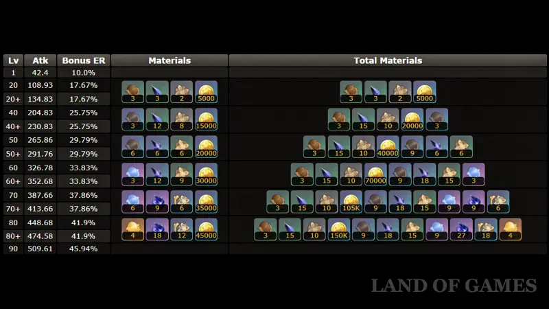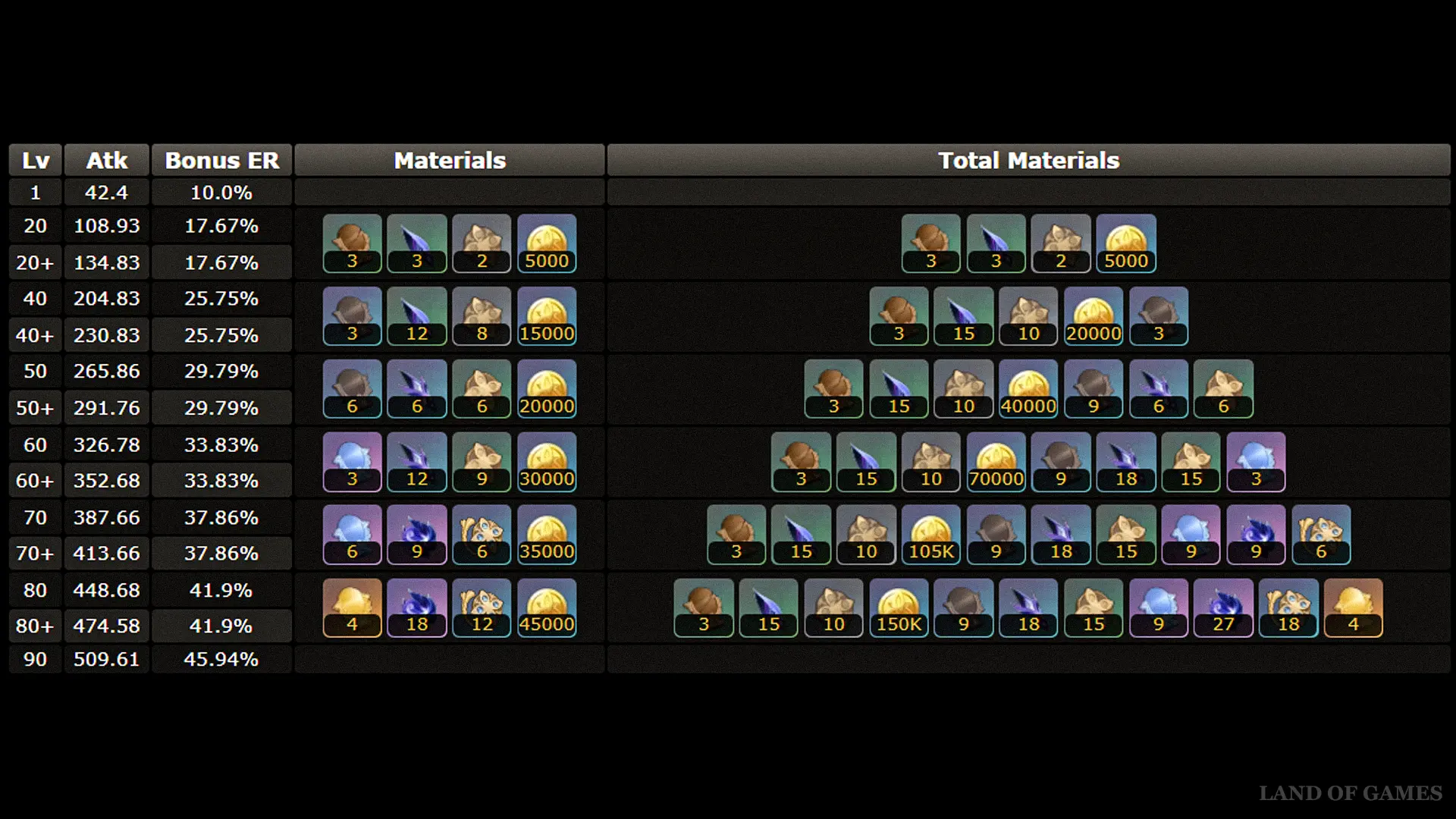 - До 800 тысяч моры и около 580 ед. руды усиления — для максимального улучшения и полного пробуждения оружия.