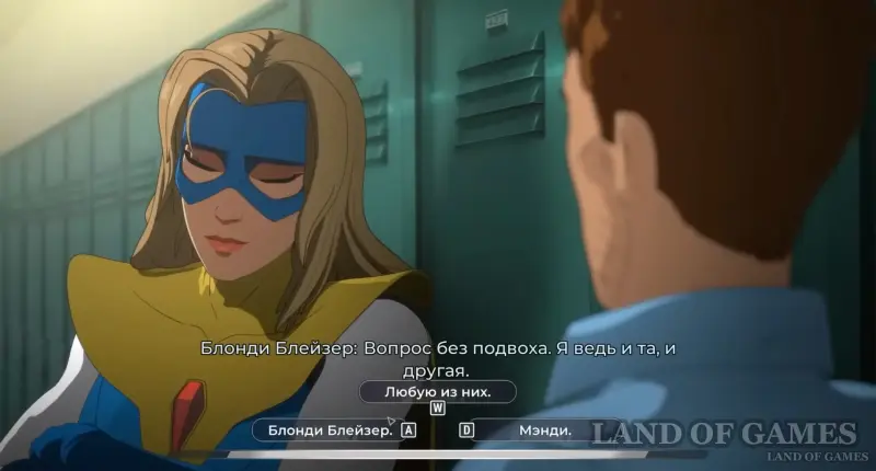 Отметим, что разговор с Блонди в 5-м эпизоде в раздевалке, когда она спросит вас про второе свидание и захочет узнать, с кем мы хотим пойти, не связан с романом, а нужен для получения очков Героя или Антигероя: