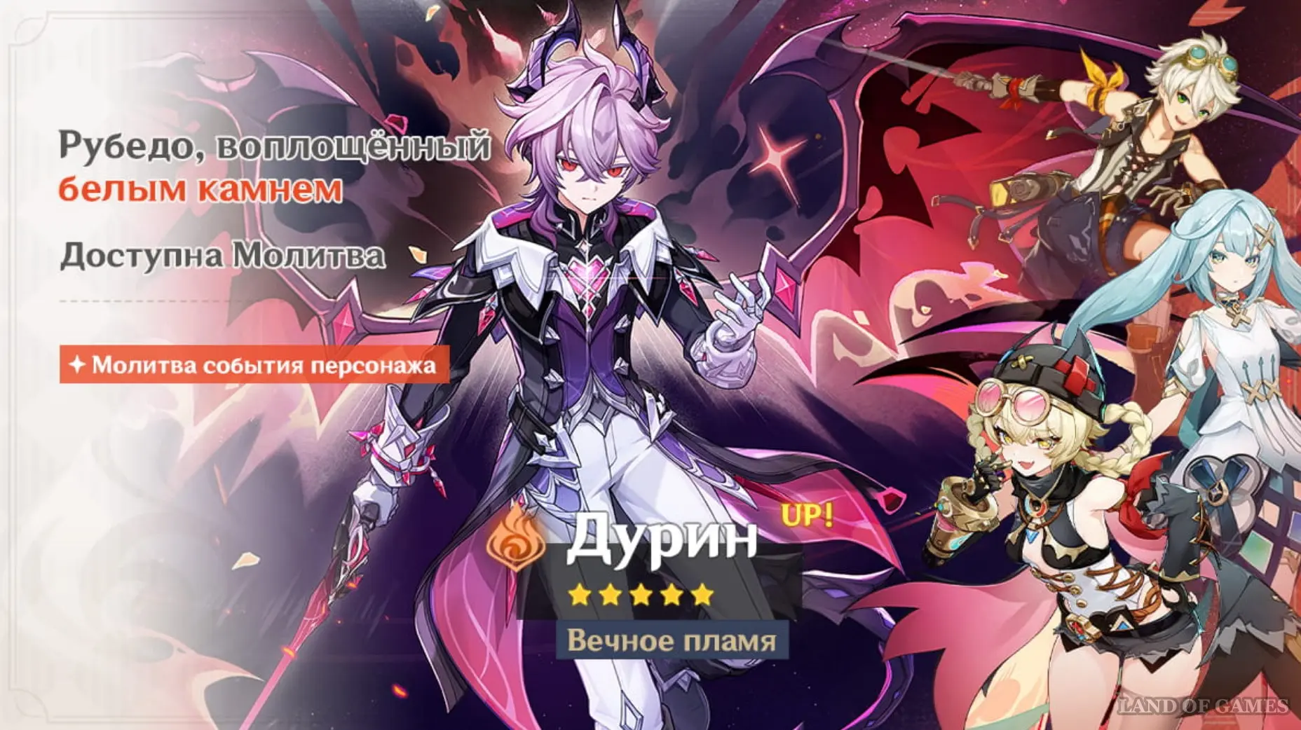 В Genshin Impact Дурин является 5-звездочным персонажем, относящимся к Пиро стихии и использующим в битвах одноручный меч. В команде он может играть роль второстепенного дамагера/саппорта, наносящего значительный огненный урон врагам из кармана и усиливающего союзников. В этом гайде вы сможете узнать про его лучший билд, оружие и артефакты, а также рекомендуемые с ним отряды.