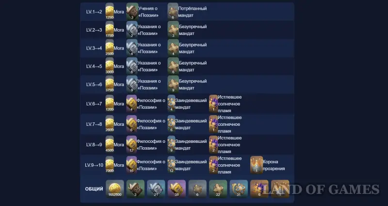 - Учения, указания и философии о «Поэзии» – добываются по средам, субботам и воскресеньям в подземелье «Забытый каньон».