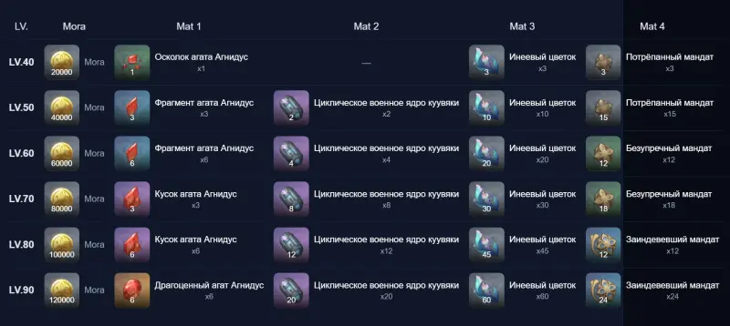 Что касается артефактов, то мы советуем брать сеты, способные повысить силу атаки, ускорить восстановление энергии (необязательно) усилить взрыв стихии и дать дополнительные баффы союзникам. В таблице ниже продемонстрированы оптимальные варианты.