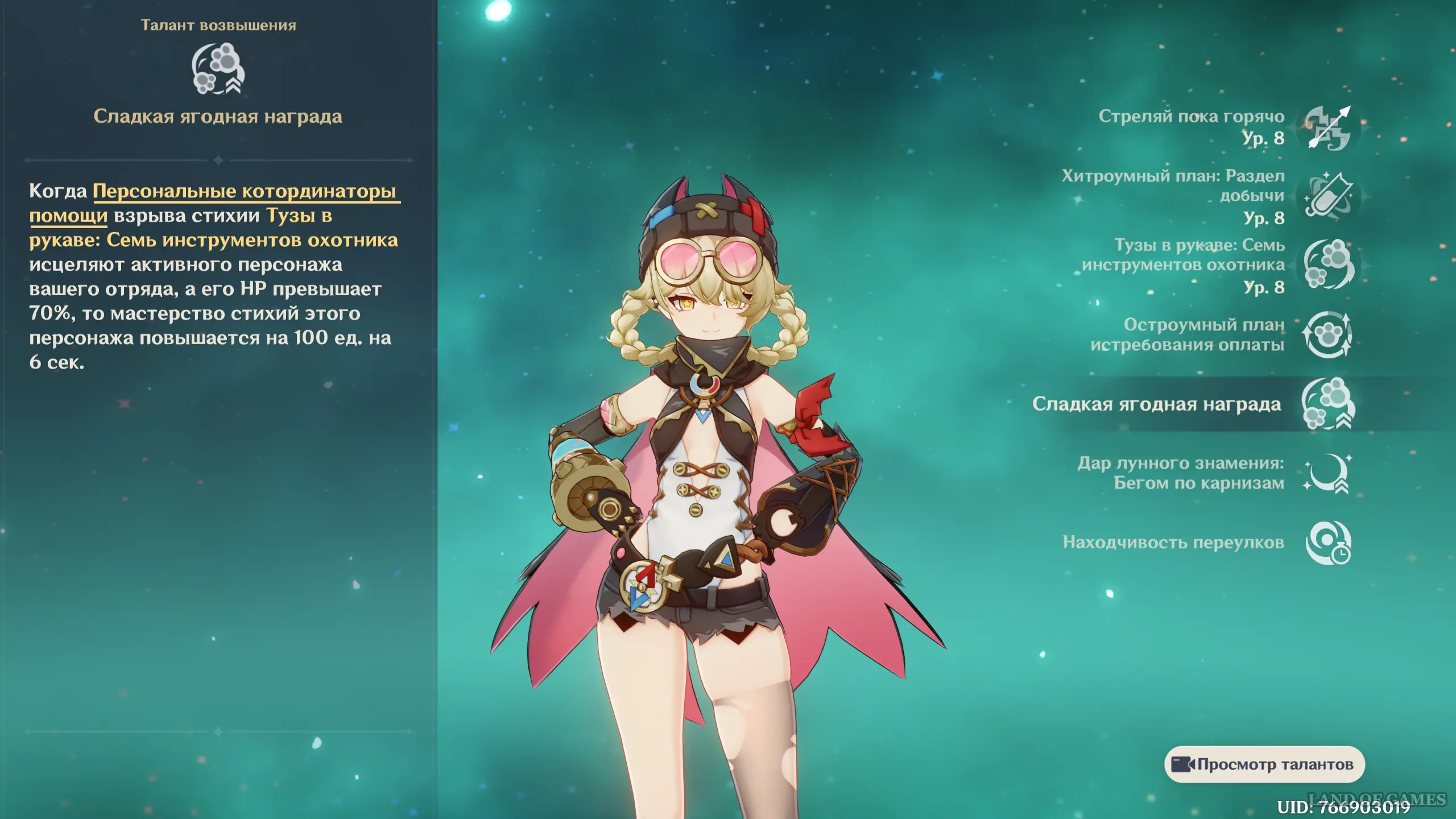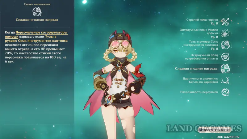 Второй – Сладкая ягодная награда – позволяет повысить мастерство стихий активного персонажа на 100 единиц на 6 секунд, когда Персональные котординаторы помощи Ягоды лечат его, а здоровье этого героя превышает 70%.