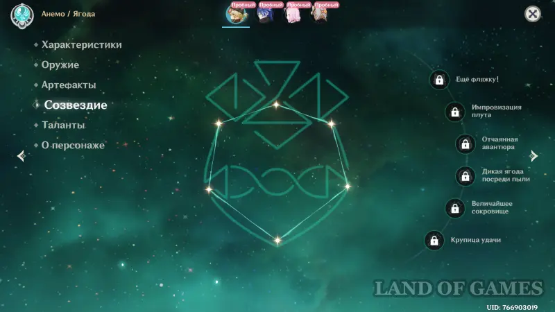 В целом Ягода обладает неплохими созвездиями, а учитывая, что до них сравнительно легко добраться, мы советуем вам постараться открыть хотя бы С1 и С2, чтобы Ягода смогла еще эффективнее накладывать элементальные статусы, наносить больше урона и получать два баффа от пассивки. Однако по-настоящему сильным саппортом ее сделает только С6.