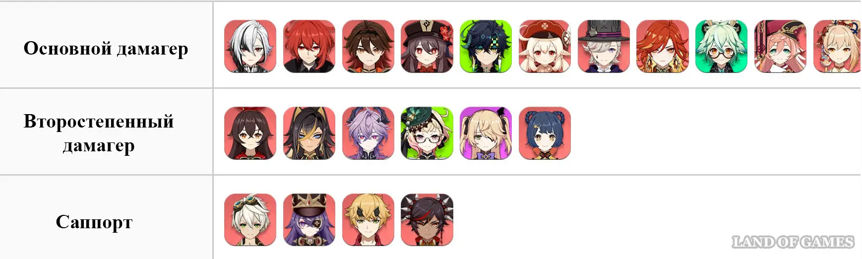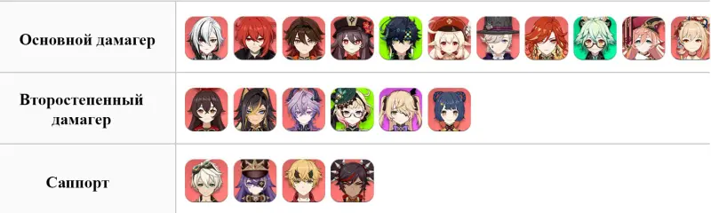 | Мейн-ДД | Саб-ДД | Саб-ДД/Поддержка | Поддержка |
