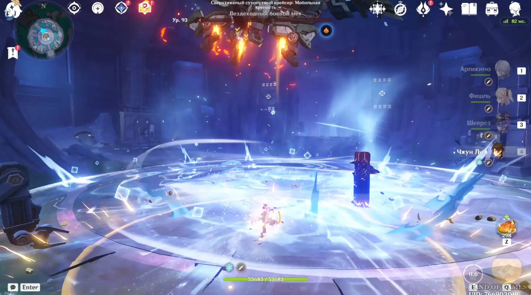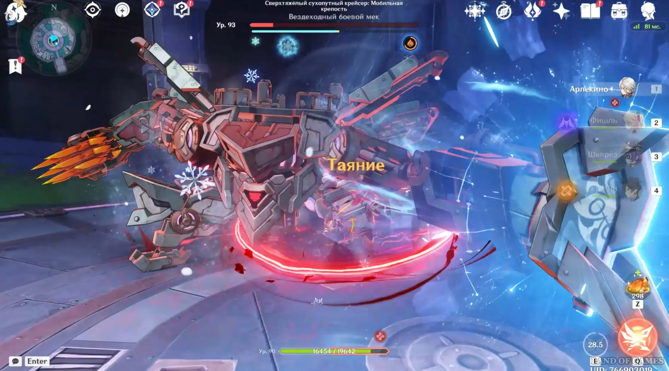 Добавим, что элементы саппорта (сюда входят также щитовики и хилеры) неважны, то есть они вполне могут быть даже Крио стихии, так как ими вы все равно не будете наносить урон боссу, ведь их главная задача заключается в усилении, лечении или защите союзников. Однако постарайтесь не брать персонажей, которые накладывают на себя Гидро статус (например, Барбару, Син Цю или Кокоми), так как некоторые атаки Мобильной крепости наносят Крио урон, поэтому они могут вас заморозить. На картинке ниже продемонстрированы все оптимальные герои для данной битвы.