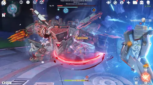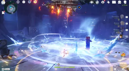 Если учесть информацию о перегреве, мы крайне рекомендуем взять на роли основного и второстепенного дамагеров Пиро персонажей, способных напрямую или/и из кармана постоянно наносить противнику огненный урон. Только в этом случае вы сможете нагреть его и вынудить снизить свое сопротивление. К тому же Пиро атаки понадобятся вам для уничтожения Крио щита босса, что и вовсе позволит оглушить его и снизить сопротивление к стихиям до -20%.