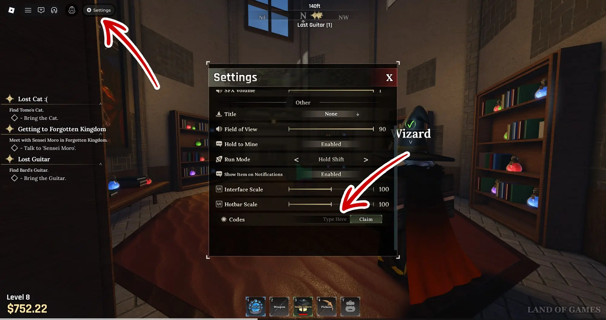- В появившемся окошке прокрутите панель на самый низ, и вы увидите текстовое поле «Codes» (Коды), куда нужно ввести один из вышеуказанных промокодов, а потом нажать на кнопку «Claim» (Получить).