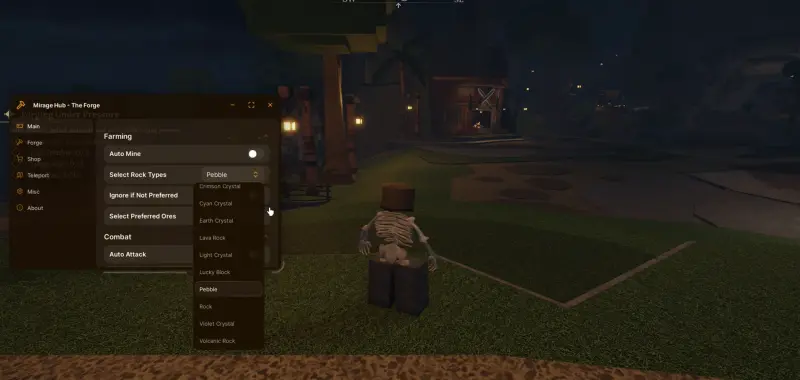 Haze Hub Script The Forge [BETA] – этот хаб считается одним из самых распространенных и включает в себя автоматическую добычу, функции быстрого выполнения мини-игр, телепорты и меню с большим количеством переключателей.