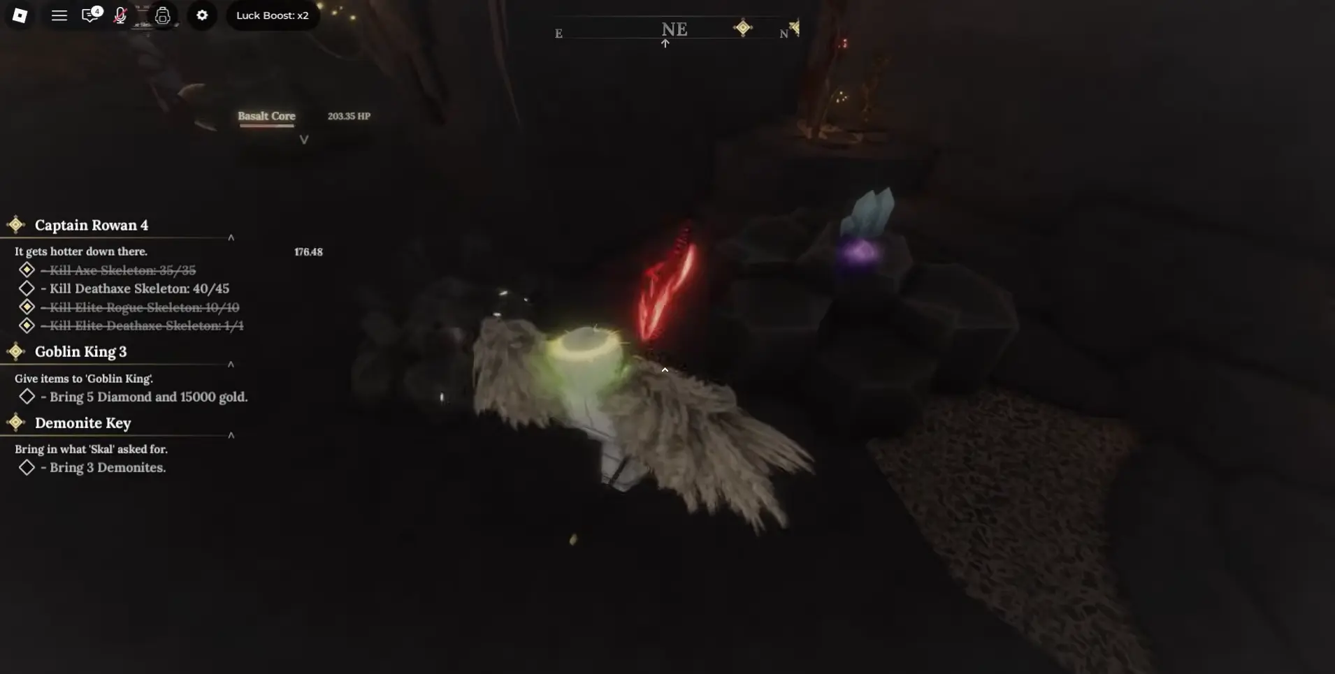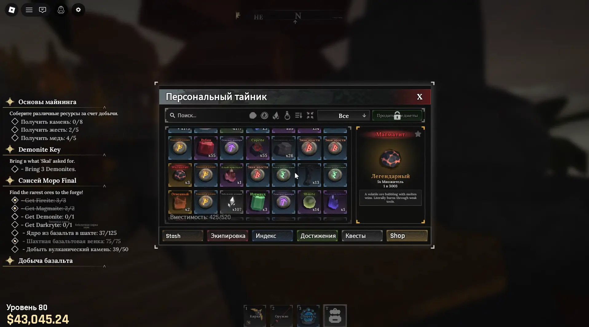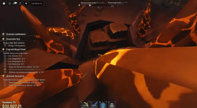 Когда вы поднимаете уровень и завершаете вводные задания, открывается Забытое Королевство и добыча резко меняет настроение. Здесь попадаются базальтовые жилы, ядра и вулканические камни, которые ломаются медленно, но содержат самые редкие находки.