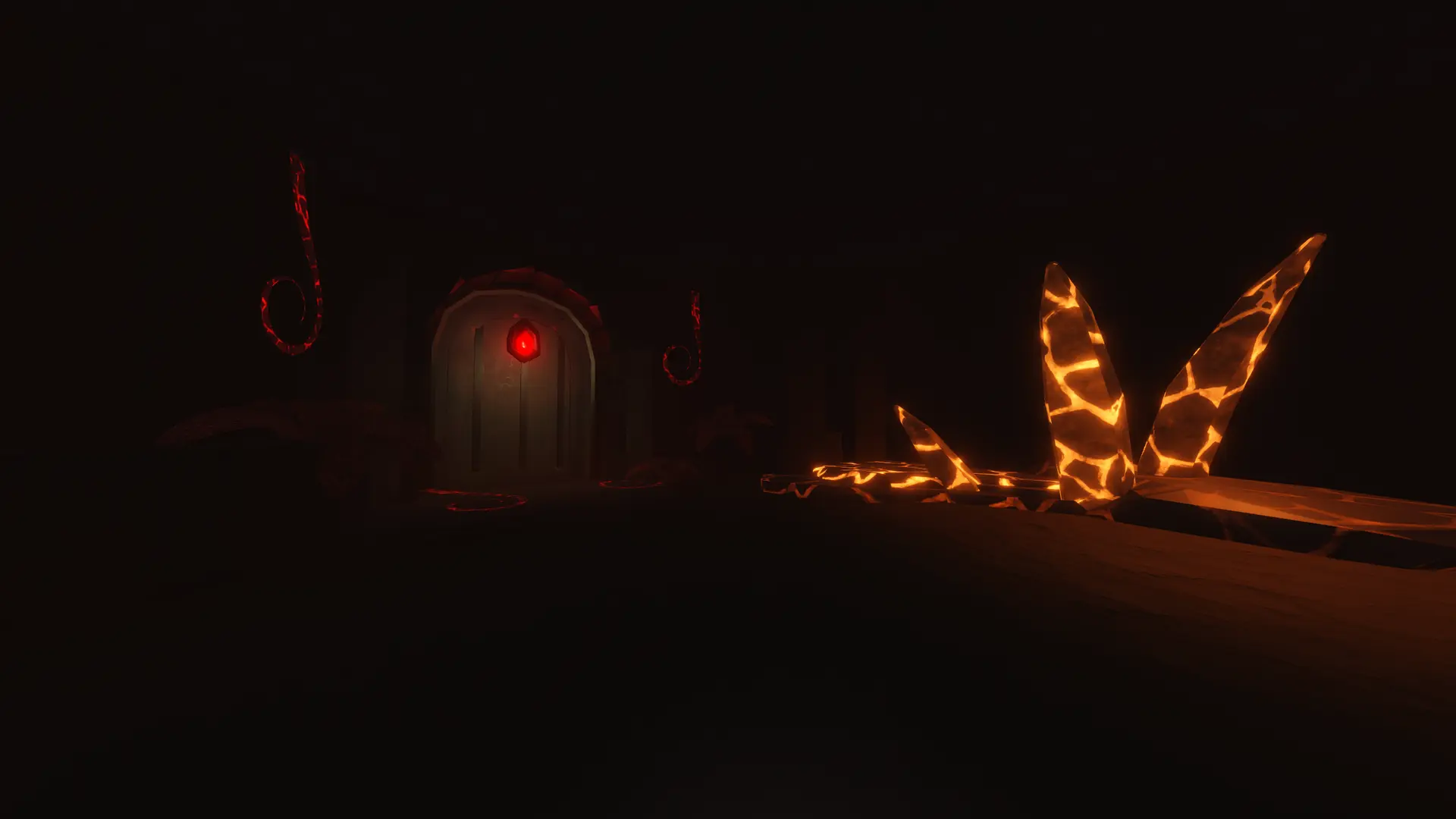Вам нужно попасть в Вулканические глубины, которые находятся внутри Разрушенных пещер Забытого королевства. От входа держитесь правой стены, ориентируйтесь на баннер «DANGER» и NPC Эмбер. Разбив базальтовые жилы, вы попадете вниз. В глубинах двигайтесь на северо-восток по компасу, пока не упретесь в массивную дверь с красным кристаллом.