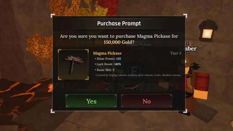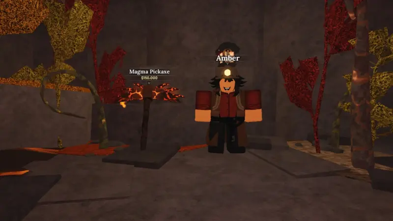 Она находится в Пепельном проходе (Ashen Passage) в Забытом Королевстве. Ориентир простой – NPC Эмбер. Магмовая кирка стоит рядом с девушкой, ее не нужно открывать через квесты, достаточно накопить нужную сумму и купить. Стоит кирка 150 000 $.