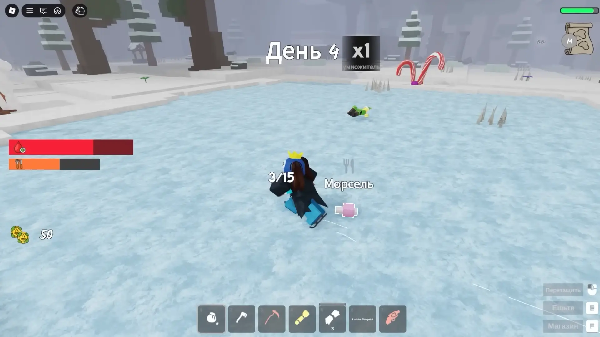 - Сани (Sled) – 25 монет: позволяют быстро перемещаться по снегу и экономить время при исследовании карты.