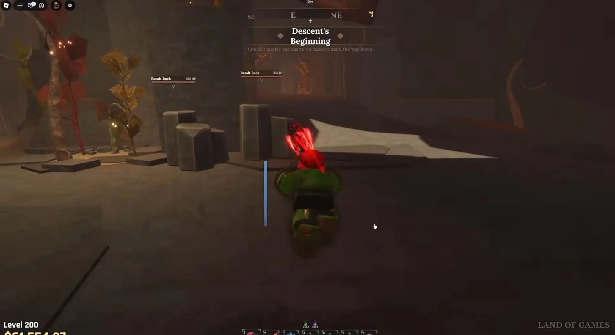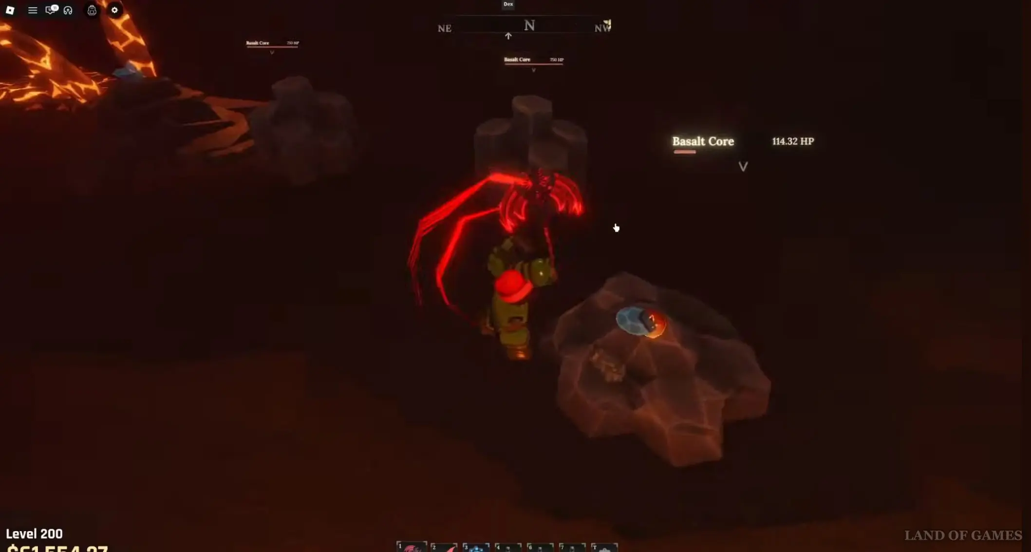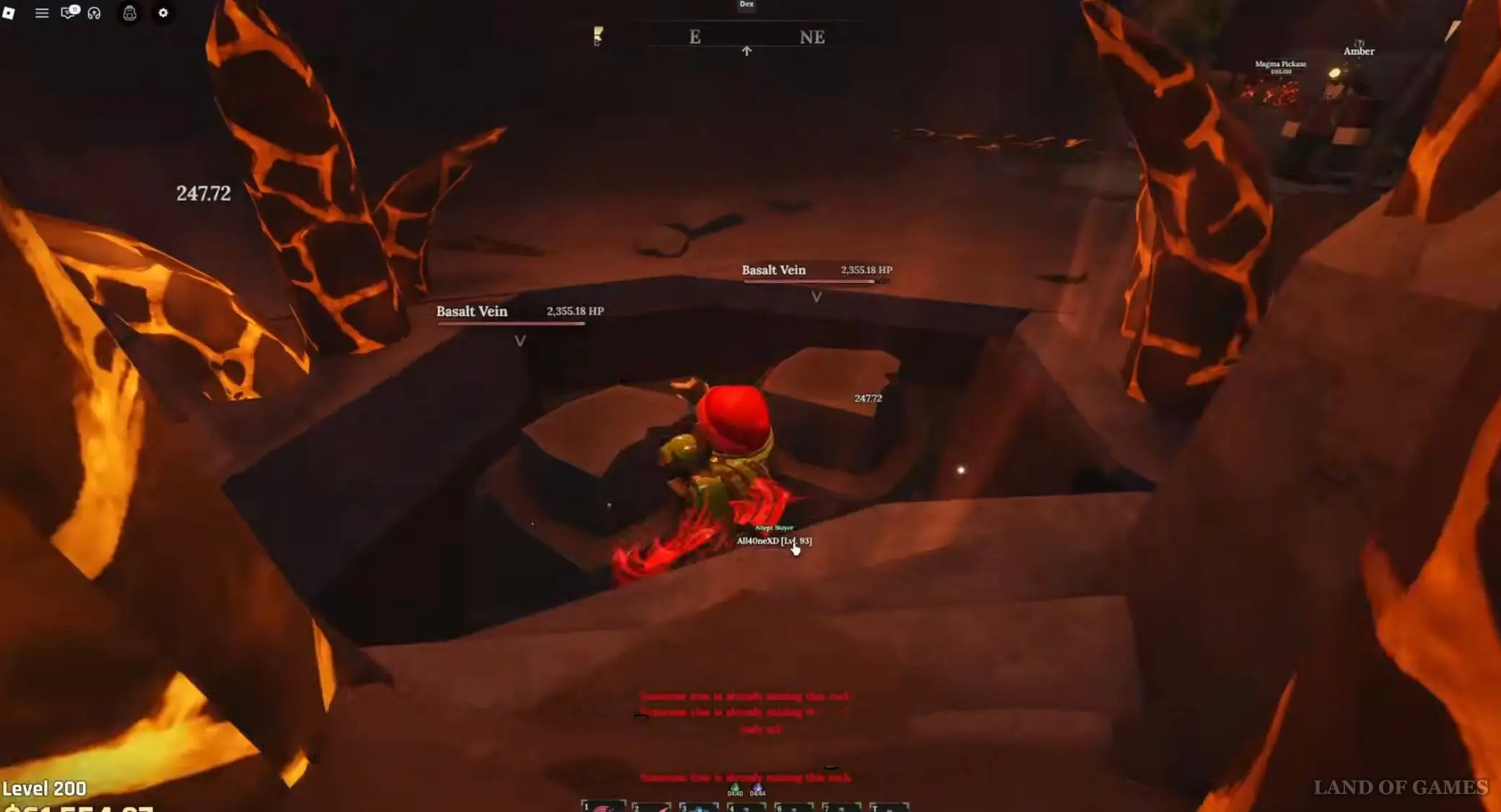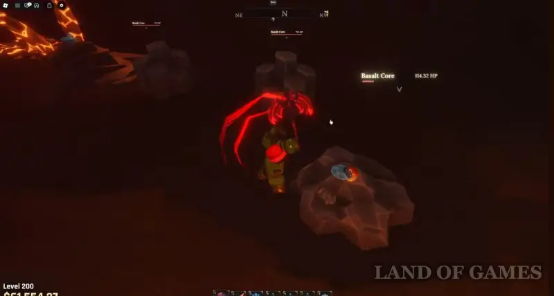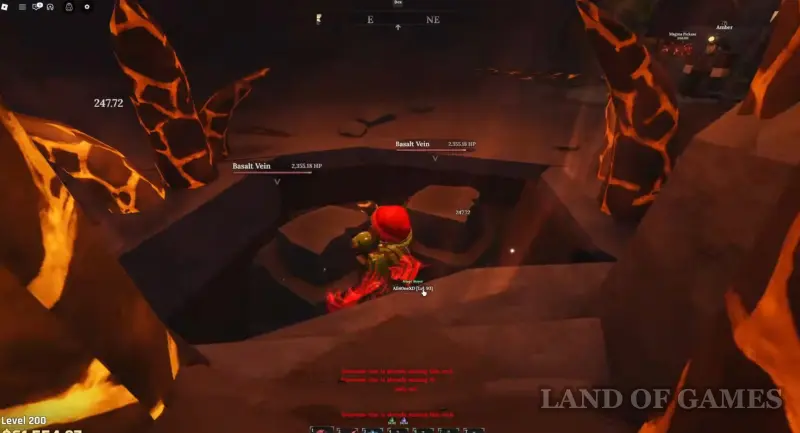Если же вы ищите место для афк фарма, то просто встаньте в дыру, ведущую в Вулканические глубины, так как здесь постоянно возникают базальтовые жилы, и вы сможете бить сразу по нескольким из них. Оставьте персонажа на несколько часов тут, и вы наверняка добудете большое количество глазной руды.