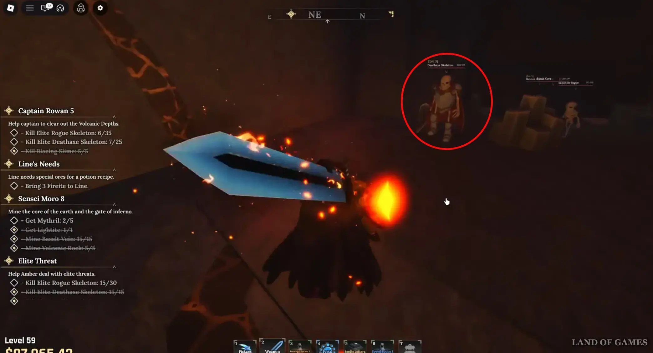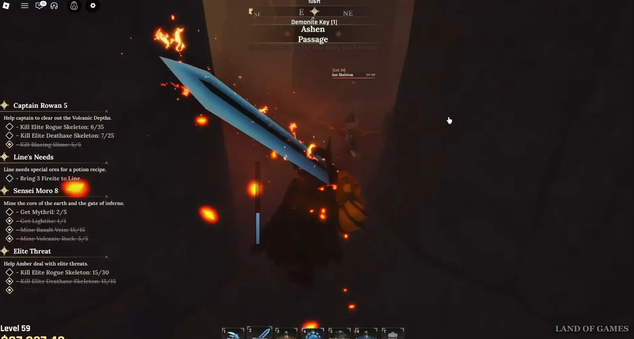 В результате вы попадете в секретную область, где обнаружите скелетов с топорами смерти, с которых с высокой вероятностью может выпасть Большая эссенция. С этих врагов также иногда дропается и Великая эссенция, но с гораздо меньшей вероятностью, поэтому для ее поисков мы советуем вам отправиться в другую локацию – Вулканические глубины (Volcanic Depths).