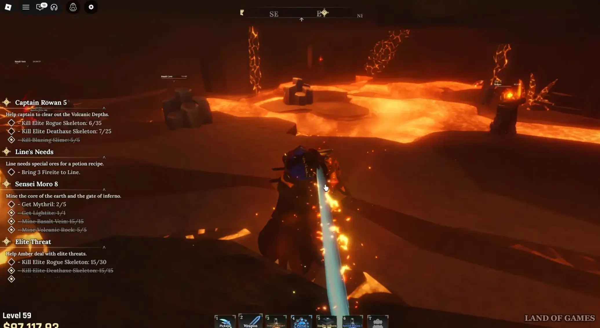 Итак, снова пройдите в правый проход пещеры и начните углубляться в него, но, не доходя до скрытого отверстия, сверните вправо, в область с магмовыми вкраплениями в стенах и на полу, а также лавовыми отростками. Здесь вы обнаружите дыру, скрытую за базальтовыми жилами. Вам необходимо будет разрушить их, используя кирку с уроном от 78 единиц и выше (как минимум, Мифриловую).
