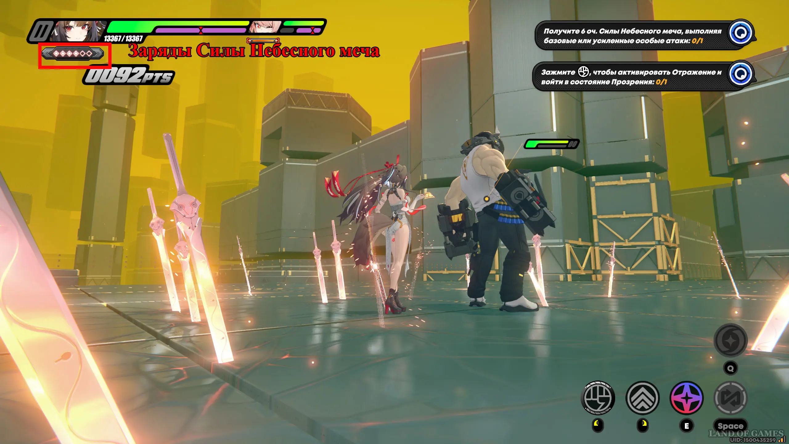 - Или зажмите кнопку особой атаки (Е), когда Е Шуньгуан потратила всю Силу Небесного меча.