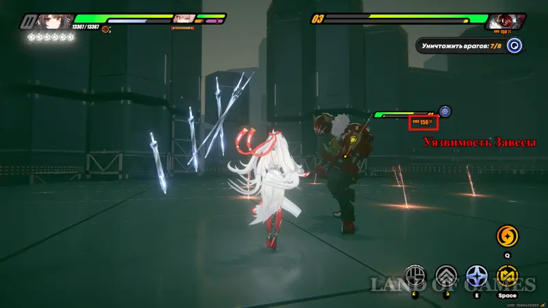 Для активации нажмите кнопку базовой атаки (ЛКМ) после помощи в защите, когда сяо-Гуан находится в состоянии «Прозрение». Агент наносит огромный физический урон. При использовании этой способности героиня неуязвима.