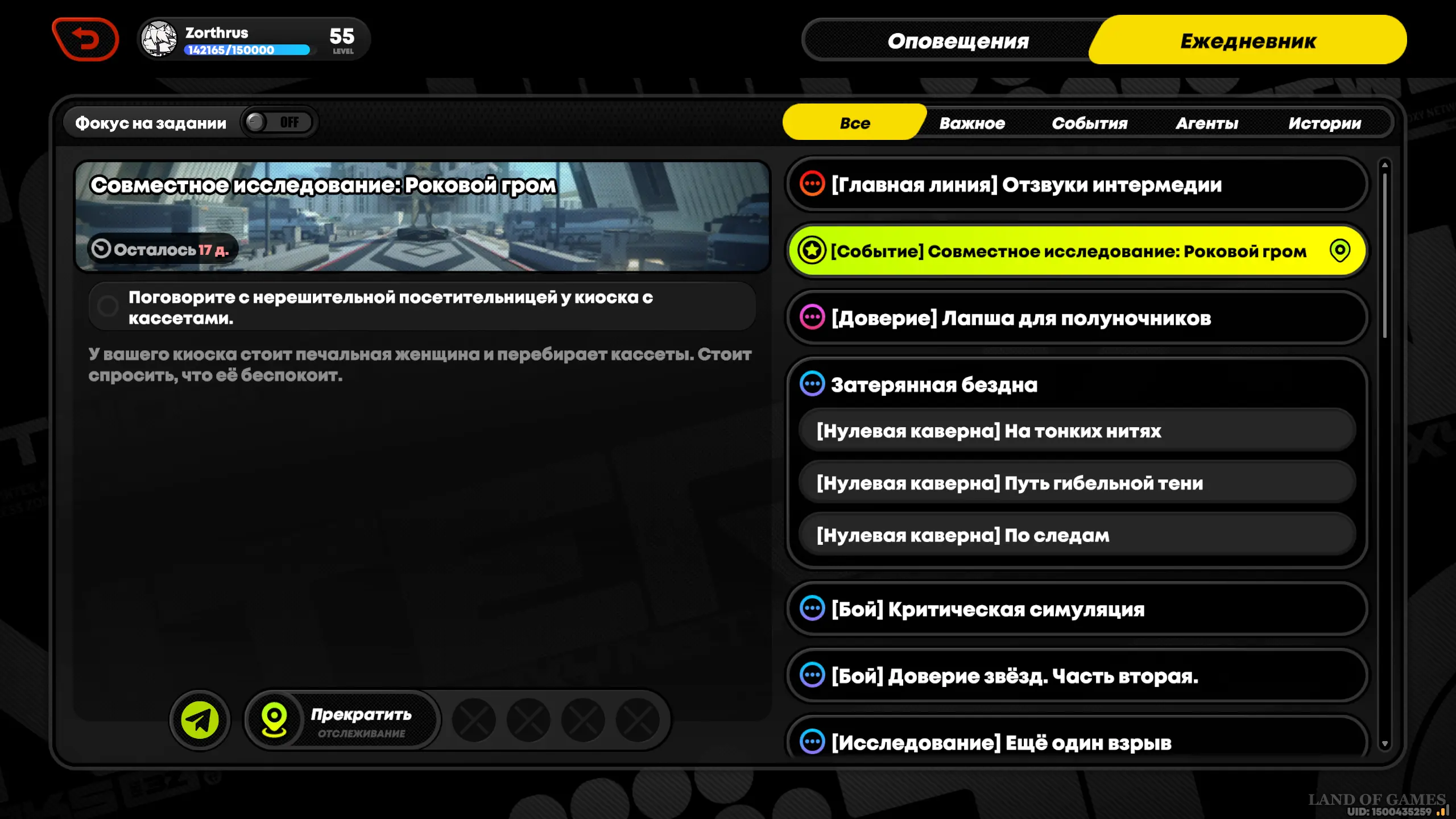 Разобравшись со всеми врагами, поболтайте с Астрой и Лайтером, после чего вы возвратитесь обратно. Далее ознакомьтесь с Доской зацепок и снова пообщайтесь с Нэнсоном, который расскажет вам об оснащении агентов и резонаторах, после чего вы сможете взяться за совместное исследование локации.