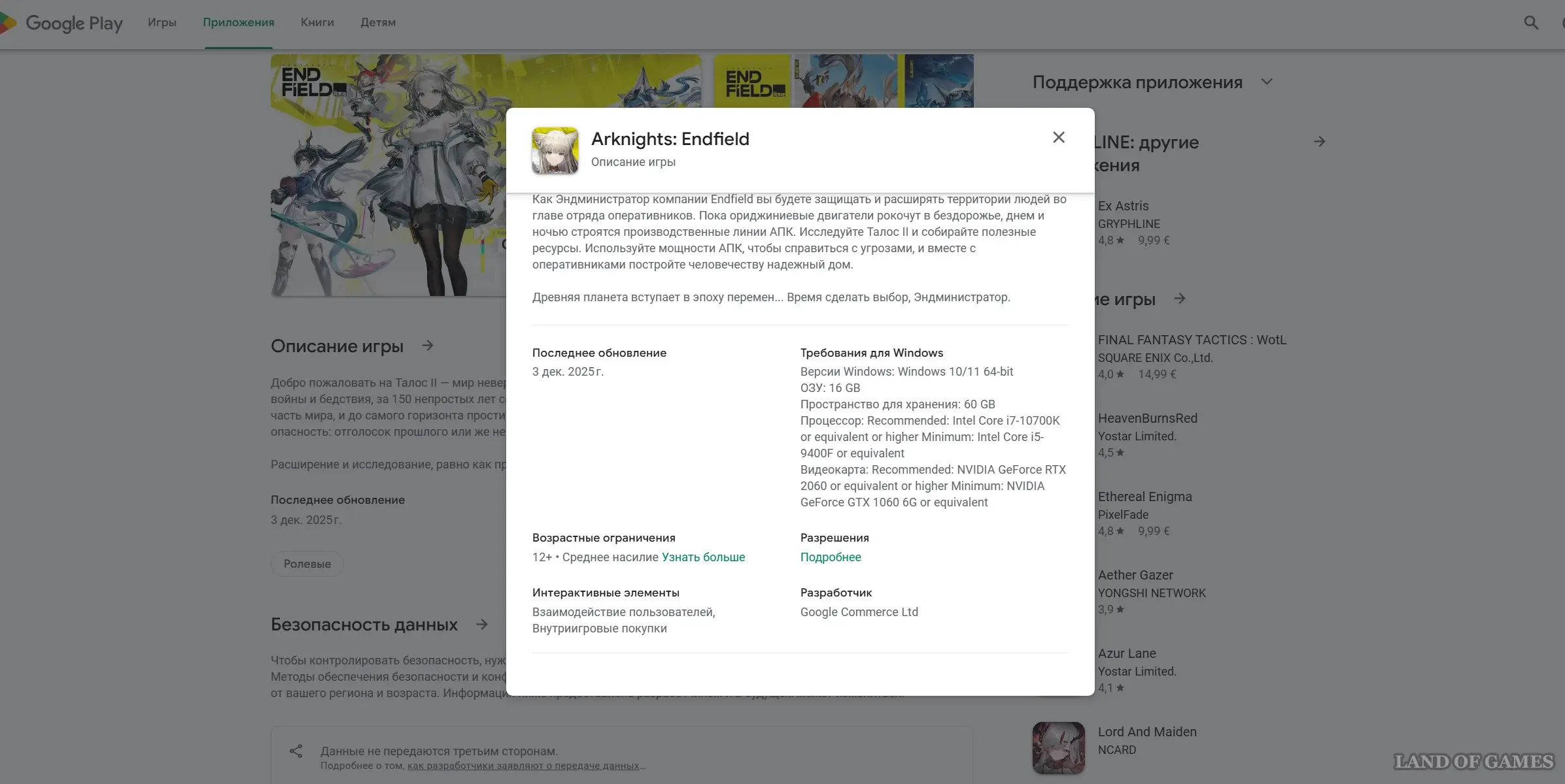 Если низкие настройки вас не интересуют, и вы хотите поиграть в Arknights: Endfield на высоких или ультра значениях, то вам придется подготовить для этого следующую систему: