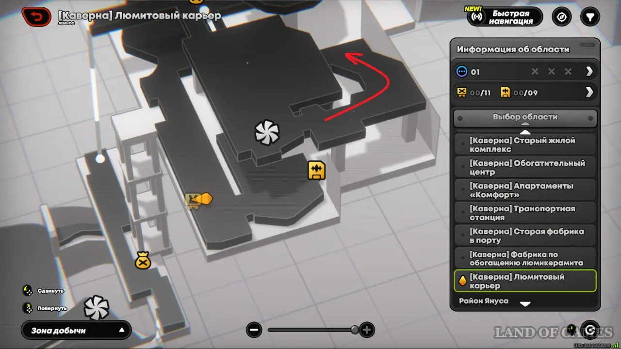 Телепортируйтесь к «Зоне транспортировки руды» в одноименной локации и пройдите мимо грузовиков на запад.