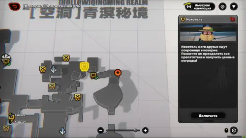 После этого проход к искателю будет открыт. Он отведет вас на юг, к сокровищу.