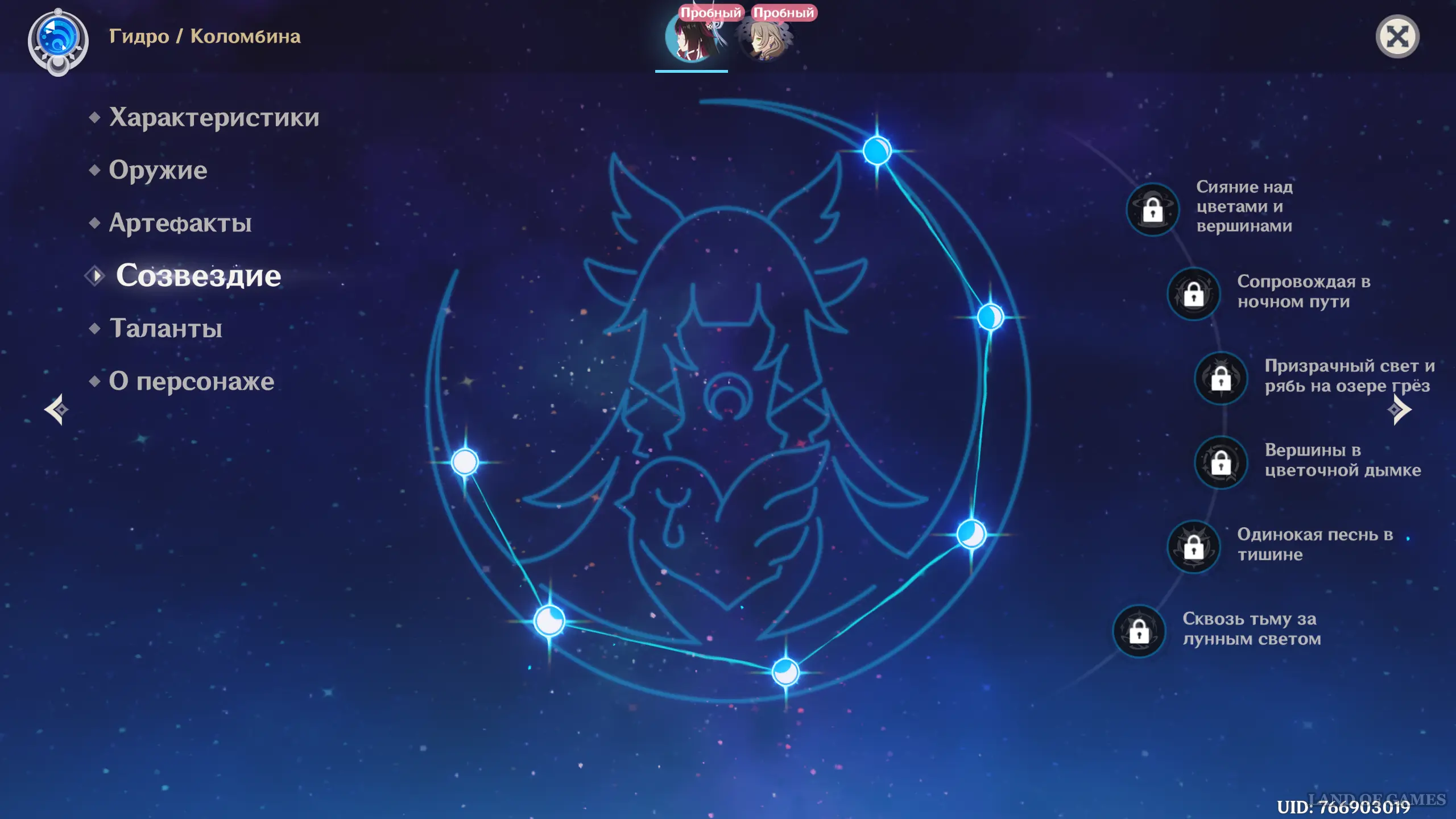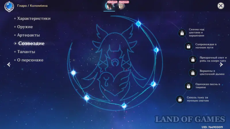 Для их открытия нужно копить Удачу персонажа, выдаваемую при выпадении дубликатов героини, что, разумеется, носит случайный характер. Учитывая малый шанс на получение 5-звездочных персонажей, вам потребуется потратить немало времени и денег на разблокировку всех созвездий. Впрочем, даже без них Коломбина без проблем играет роль саб-ДД/саппорта.