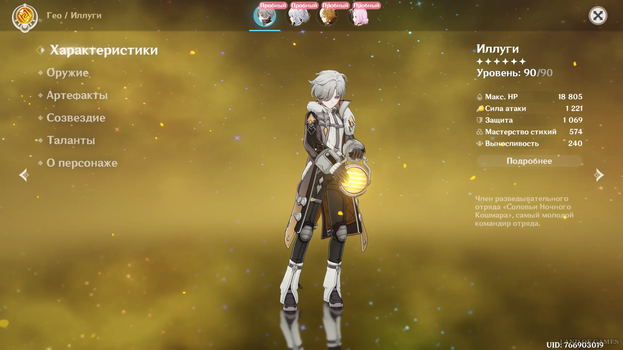 Впрочем, вы вполне можете взять Иллуги и в обычный Гео отряд, активирующий стандартный Кристалл, ведь этот молодой командир отряда может дать баффы к любому Гео урону (но еще раз отметим, что зачастую вместо него лучше взять других Гео саппортов). Главное не добавляйте в команду персонажей, не относящихся к Гидро или Гео стихии, иначе лишитесь мощного бонуса к дамагу от пассивки.