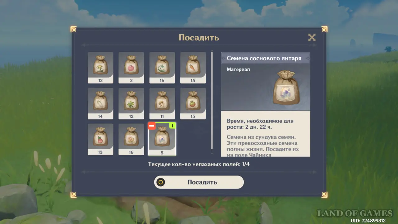 - Купите у Пухляша участок «Путь ценности: Нефритовое поле». Всего можно взять 2 штуки, каждая из которых имеет 4 места для посадки.