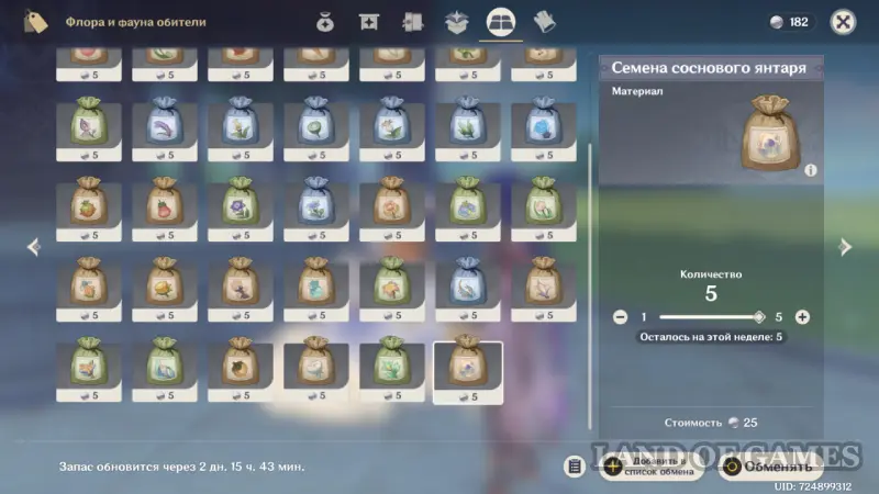 - Приобретите у Пухляша (можно купить 5 штук) или найдите семена соснового янтаря (выпадают при сборе местной диковины). Ассортимент торговца обновляется 1 раз в неделю.