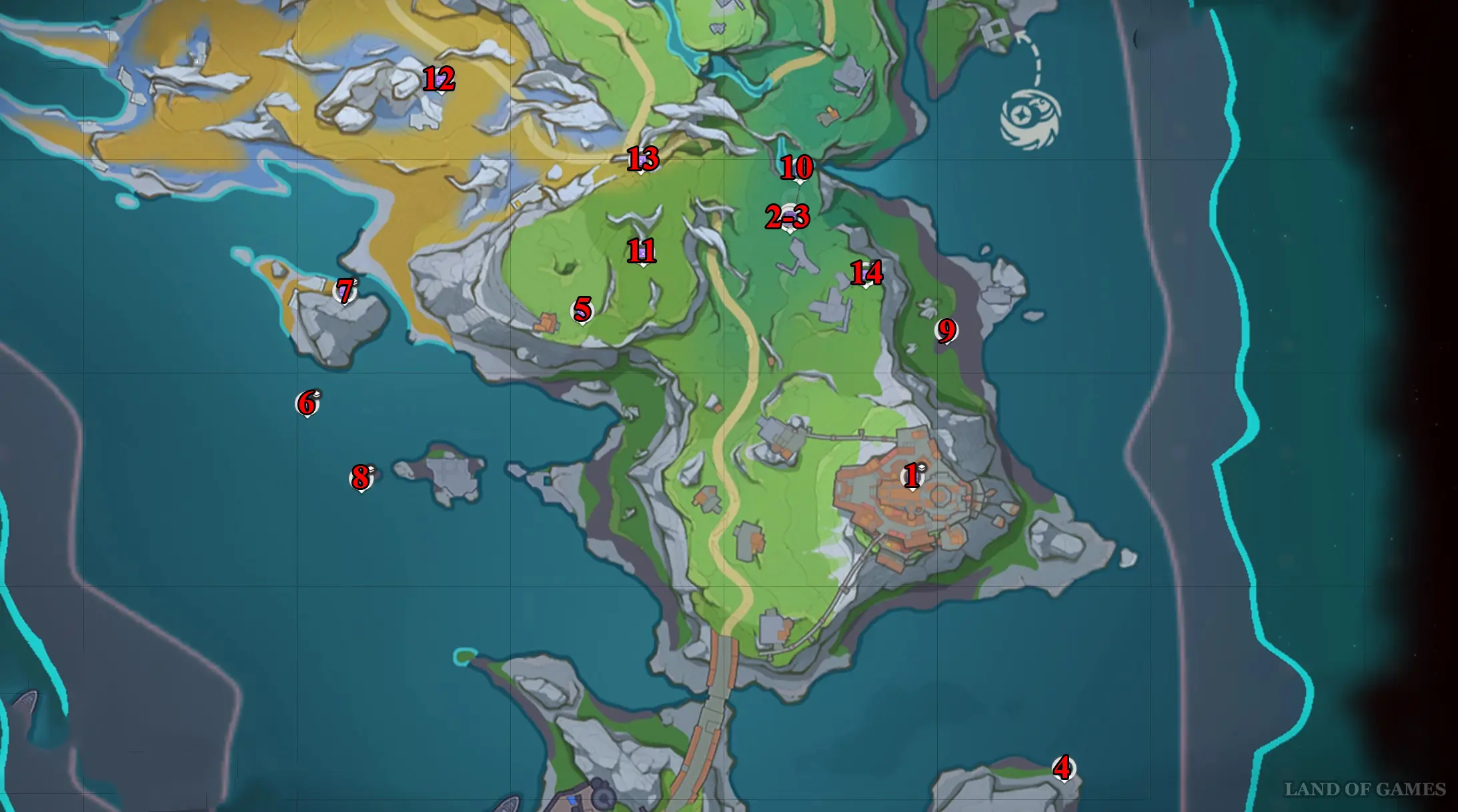 Более распространенные сундучки – в локациях версии 6.3 можно найти 93 штуки. В каждом из них хранятся по 5 примогемов и 2 печати луны. На карте ниже будет показано их примерное расположение.