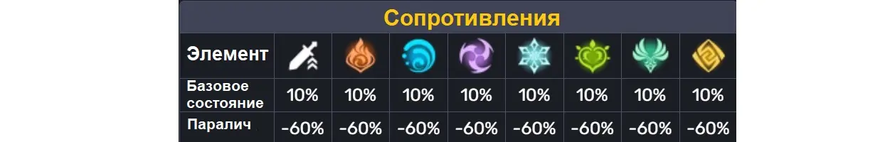 Кроме того, в парализованном состоянии все сопротивления монстра снижаются до -60%.