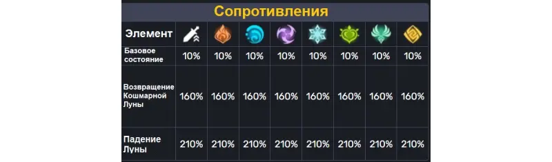 В альтернативных подпространствах вы встретитесь с теневыми копиями. Они имеют те же уровни сопротивления, что и босс в базовом состоянии. Их максимальный уровень здоровья на 90 уровне равен 267 тысячам, что можно сравнить со среднестатистическим элитным врагом типа священных хищников из Сумеру.