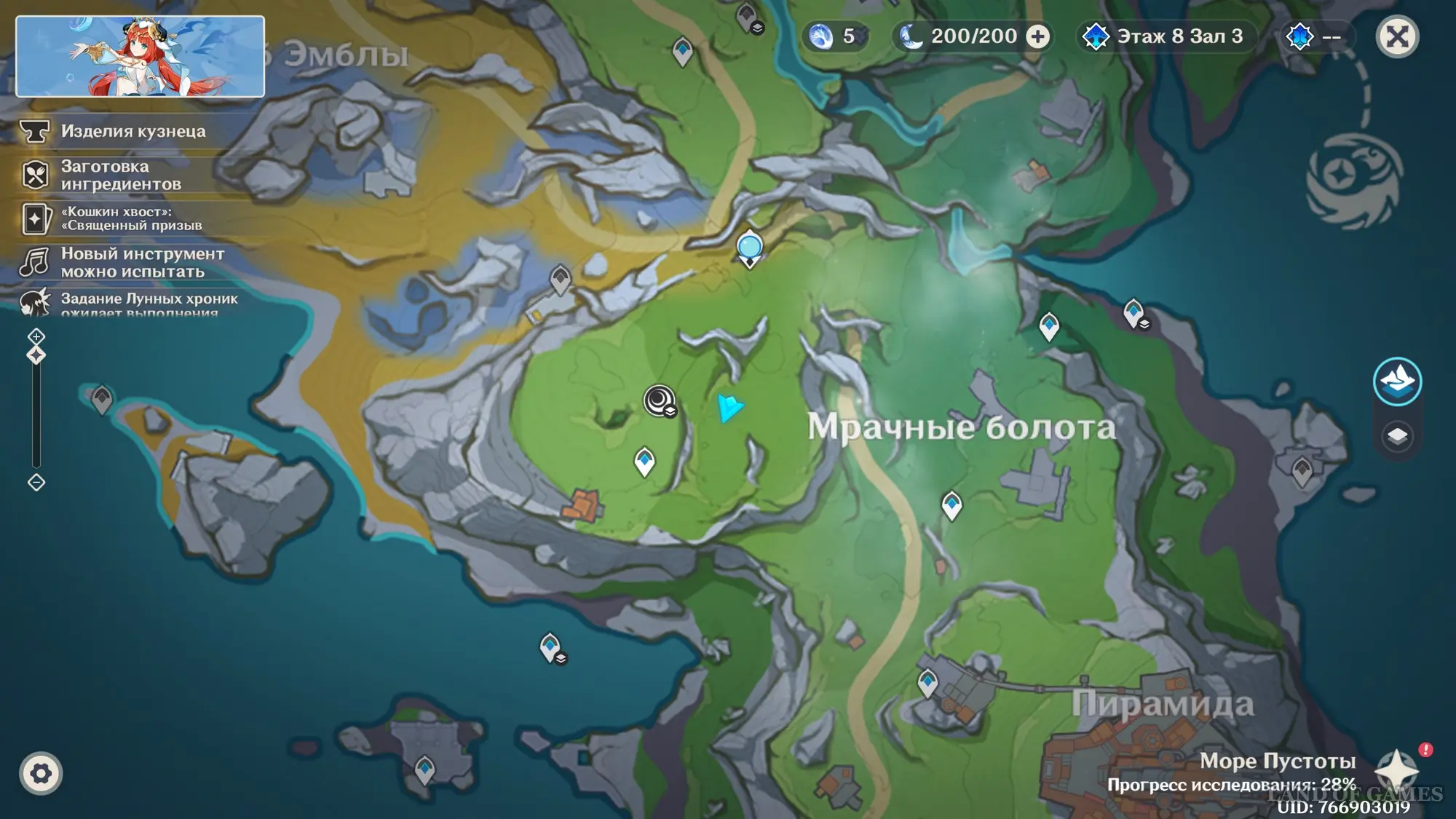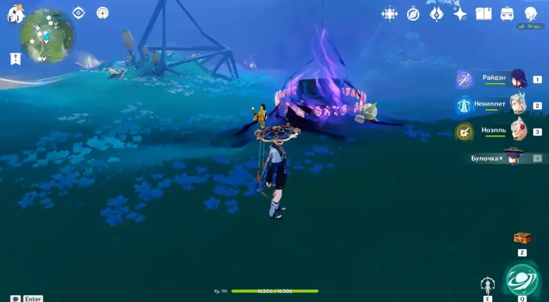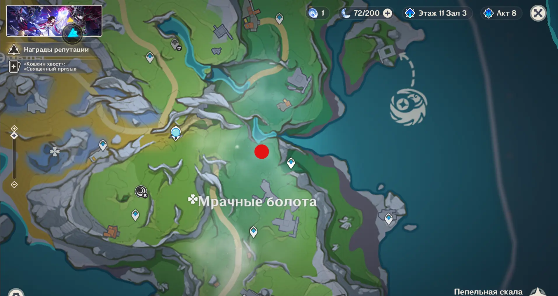 Данная головоломка расположена на Мрачных болотах. Переместитесь к точке телепортации на севере локации, а затем пройдите по дороге немного на северо-запад, чтобы оказаться рядом с водоемом. Точное местоположение головоломки отмечено на скриншотах ниже. Чтобы разгадать загадку, потребуется разрушить два туманных барьера Бездны с помощью таинственной ленивой овечки, а в награду вы получите два сундука: обычный и драгоценный. Мы в деталях рассказали об этом в отдельном гайде.