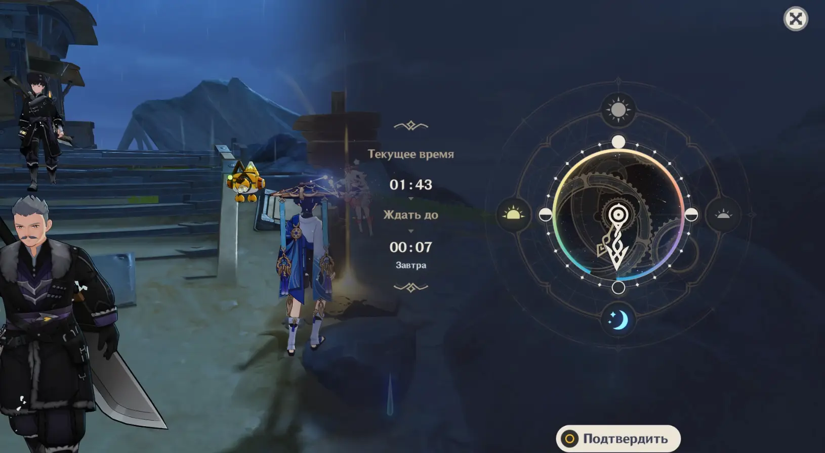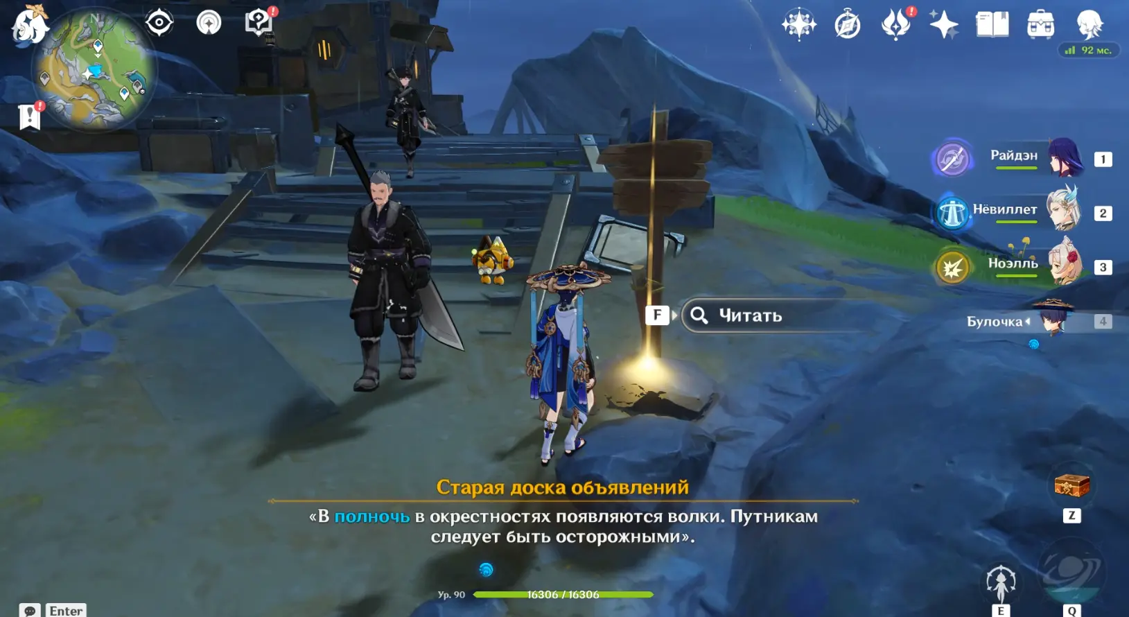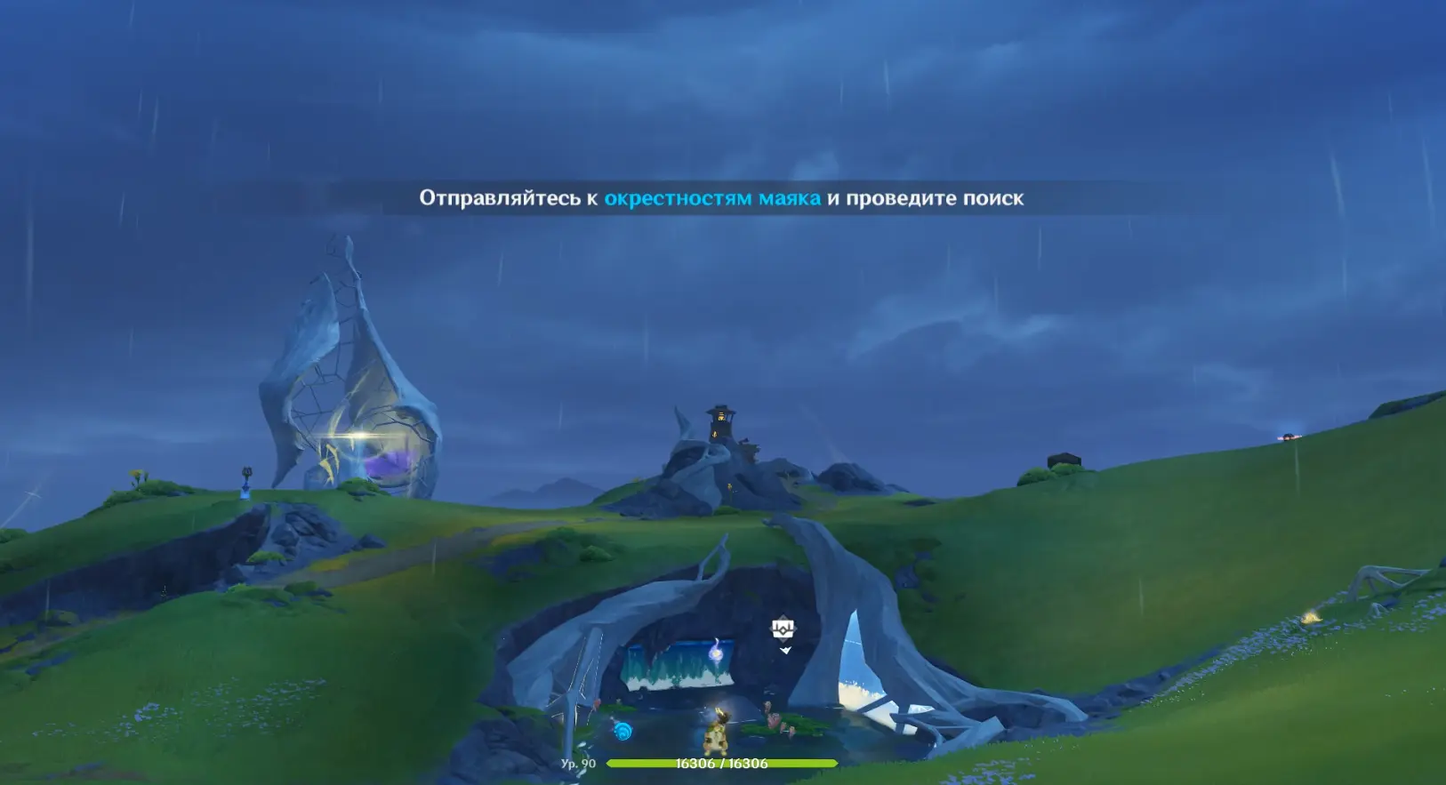 Теперь отправляйтесь к маяку, расположенному выше от точки, где вы начинали всю цепочку, но правее области Столб Эмблы. В этой зоне находится табличка с текстом. Обязательно прочитайте ее, так как это условие активации следующего шага. После прочтения откройте меню времени и переведите его на полночь (00:00). Если все сделано правильно, в этой же области появится третий волк.