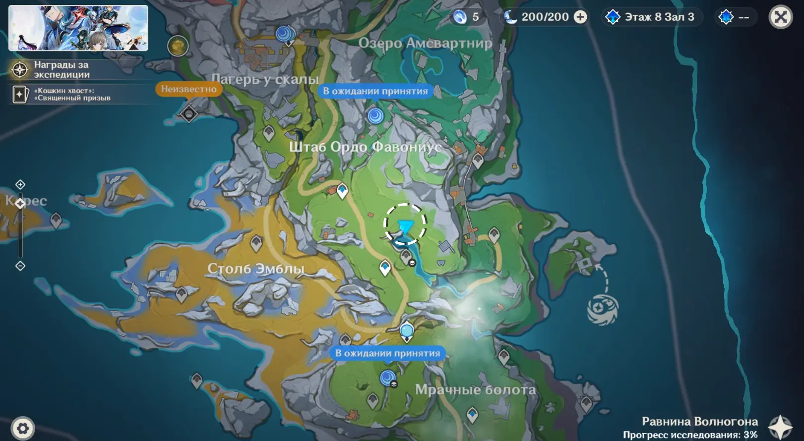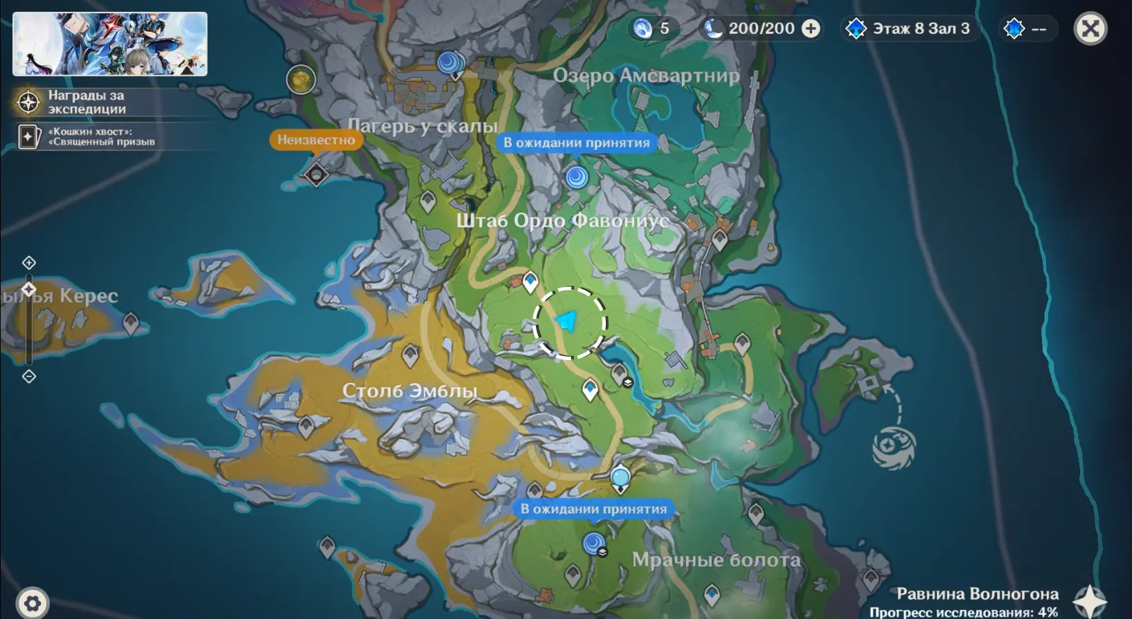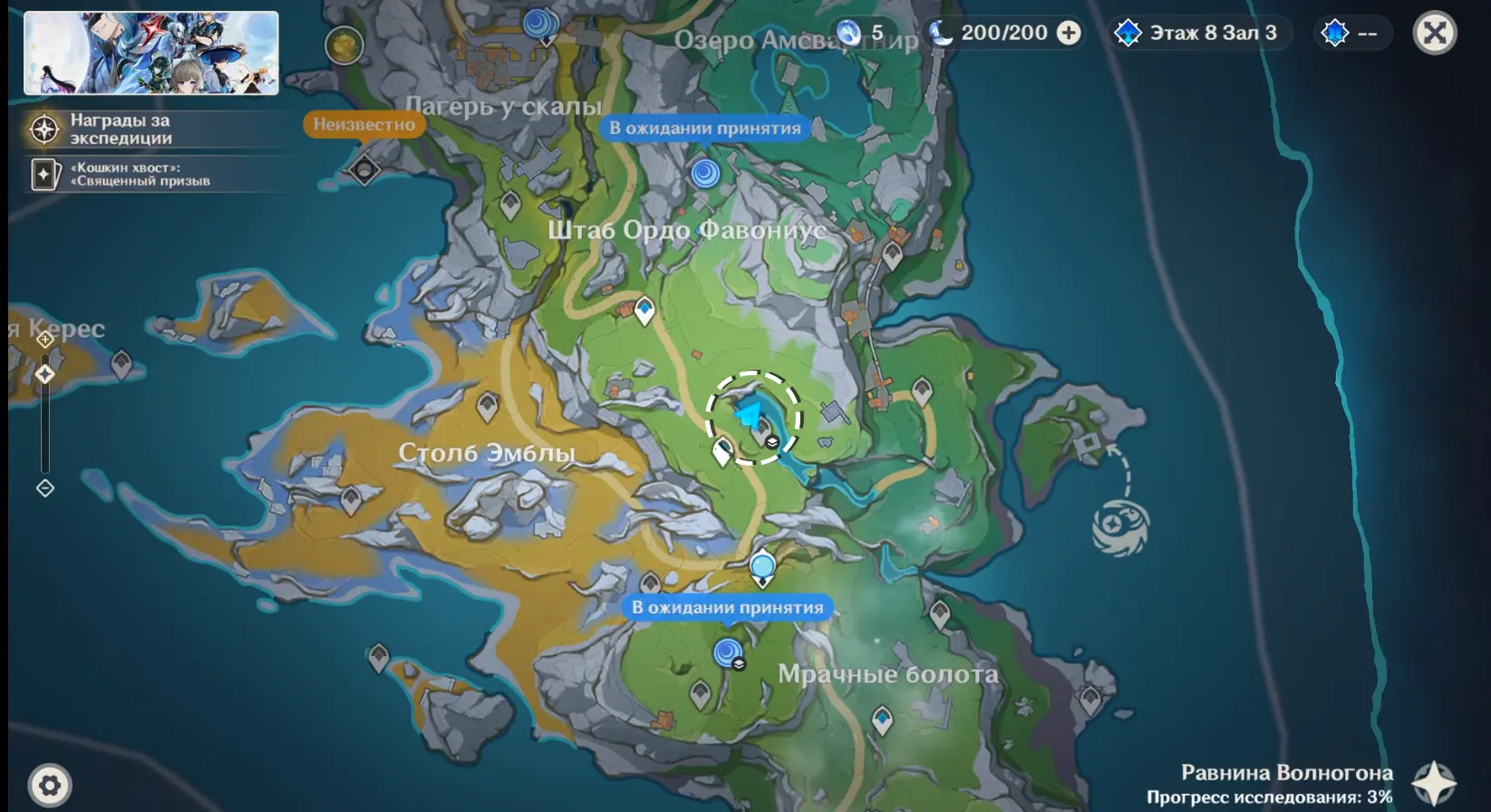 Теперь отправляйтесь к маяку, расположенному выше от точки, где вы начинали всю цепочку, но правее области Столб Эмблы. В этой зоне находится табличка с текстом. Обязательно прочитайте ее, так как это условие активации следующего шага. После прочтения откройте меню времени и переведите его на полночь (00:00). Если все сделано правильно, в этой же области появится третий волк.