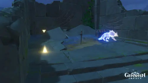 В конце пути все волки вновь соберутся на вершине и укажут вам на воткнутый в камень меч. Взаимодействуйте с ним, чтобы получить роскошный сундук.