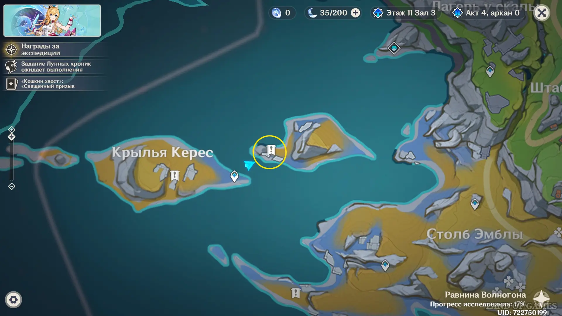 В Genshin Impact головоломка на Крыльях Керес – это трехэтапная активность с одноименного острова к западу от Равнины Волногона (север Нод-Края), за решение которой можно получить роскошный, драгоценный, а также несколько богатых сундуков, и разблокировать ачивку «Холм в лунном свете». В этом гайде разберем, как успешно завершить все загадки и собрать трофеи.