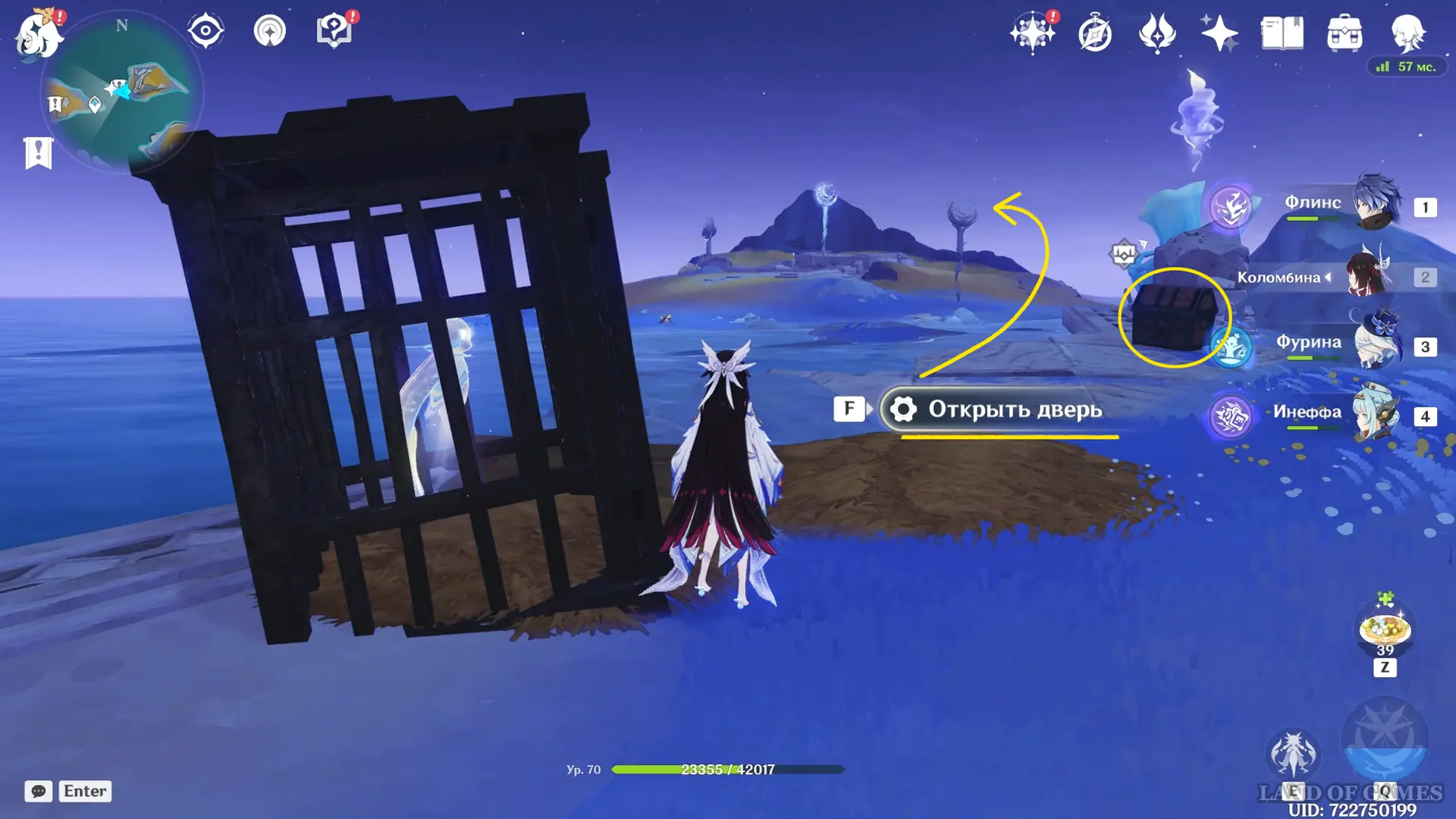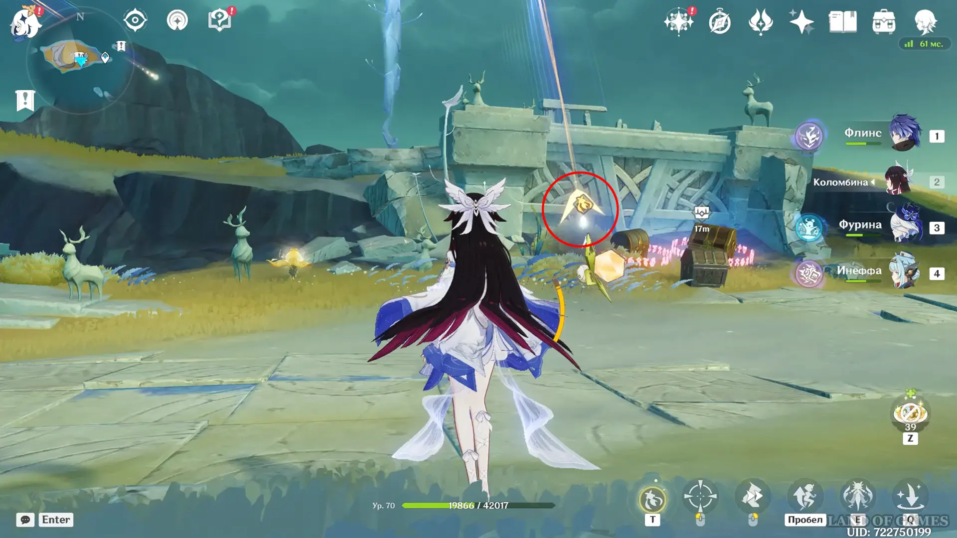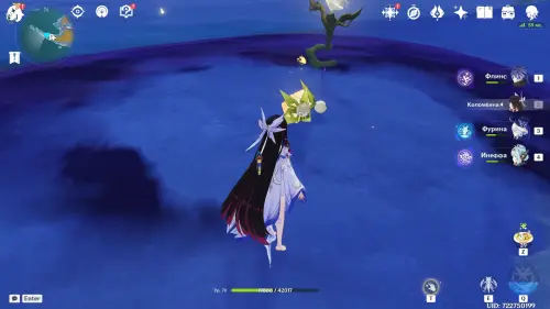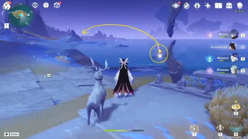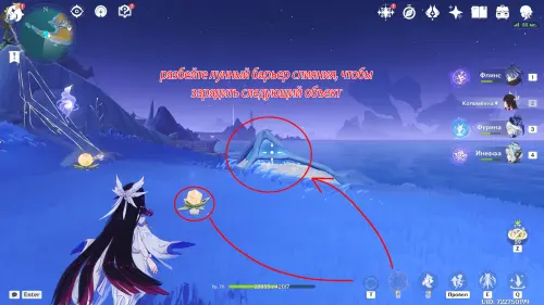 Вторая куухенки заперта в клетке к северо-востоку от острова – победите хиличурлов и откройте ей дверь. После освобождения, фея устремится к острову и создаст за собой лунный шлейф, по которому можно быстро вернуться на Крылья Керес.