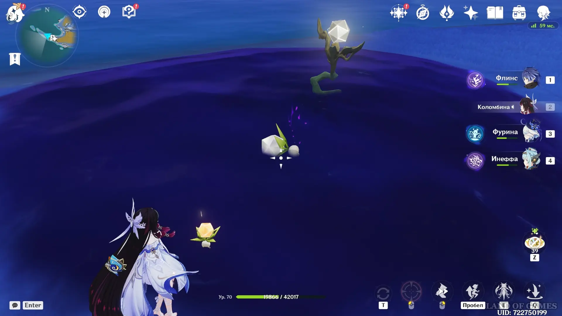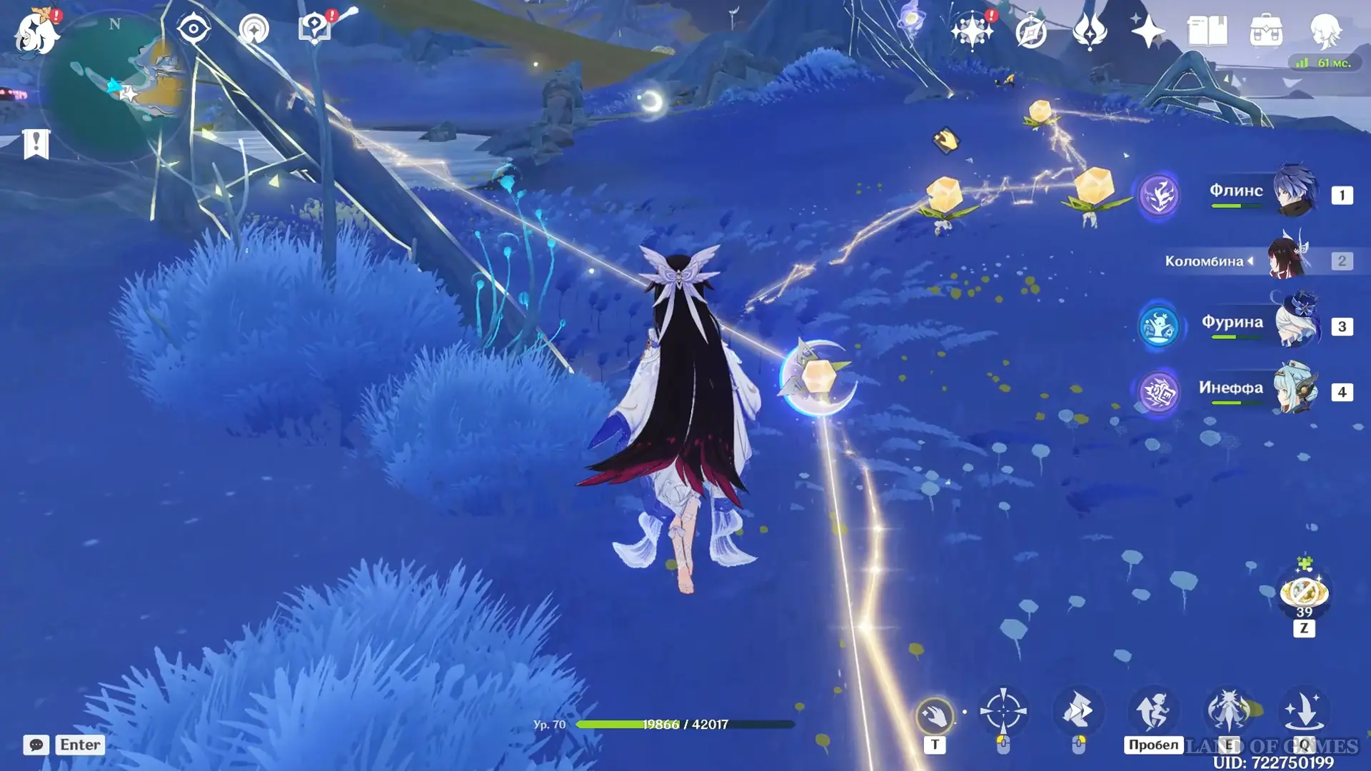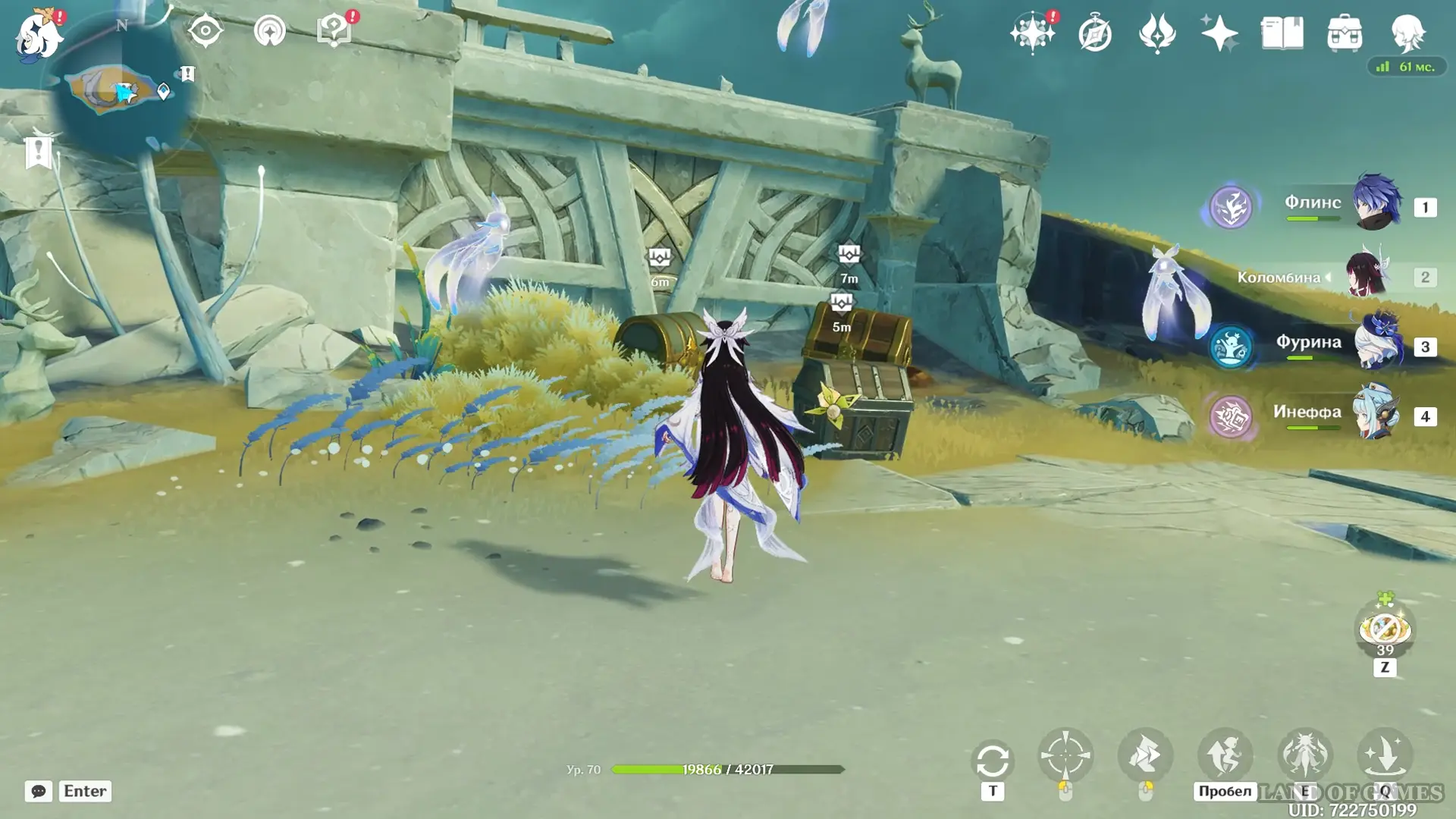Вторая куухенки заперта в клетке к северо-востоку от острова – победите хиличурлов и откройте ей дверь. После освобождения, фея устремится к острову и создаст за собой лунный шлейф, по которому можно быстро вернуться на Крылья Керес.