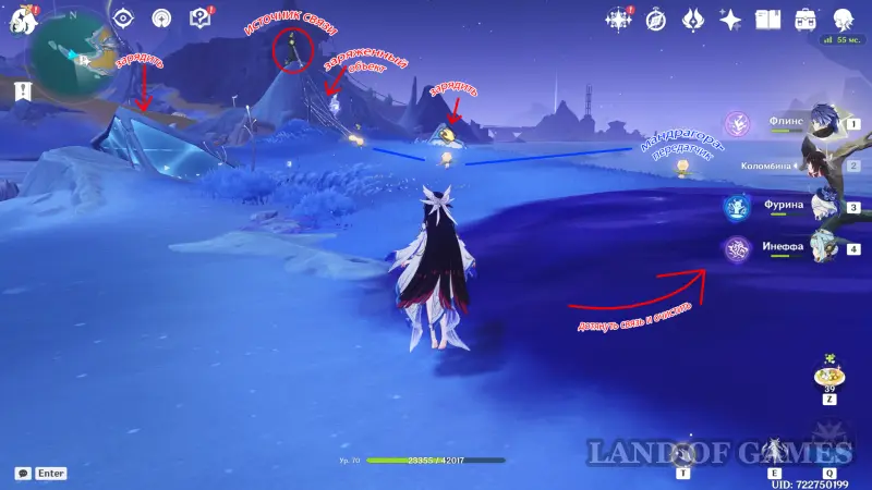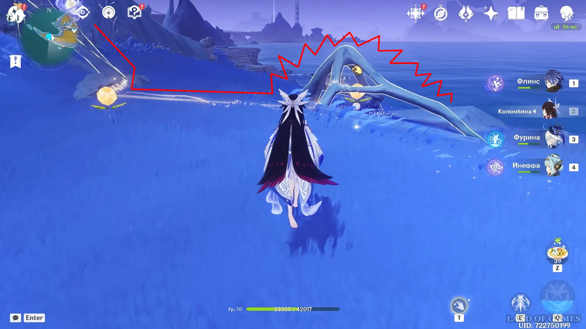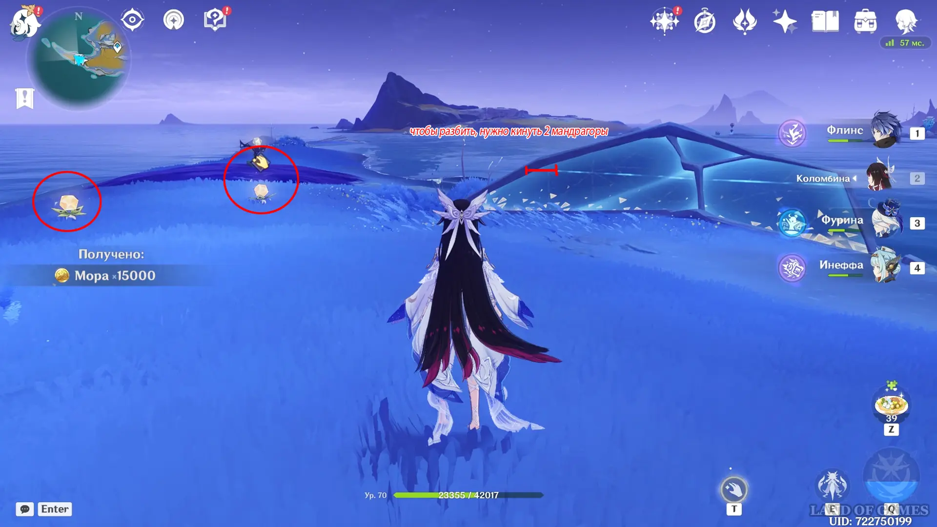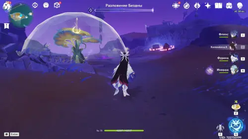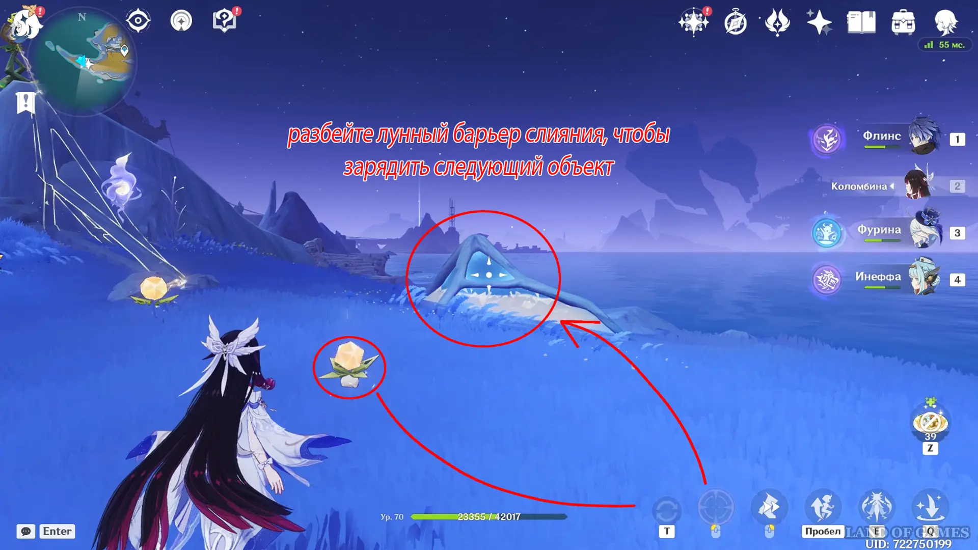 Полученный от шпилецвета навык позволяет создавать щит, с помощью которого получится отбить выстрелы ока погибели и избавиться от разложения бездны. Зажимаем ЛКМ и отпускаем в момент, когда выстрел приближается к барьеру. Процесс уничтожения всех парящих глаз мы показали на видео ниже: