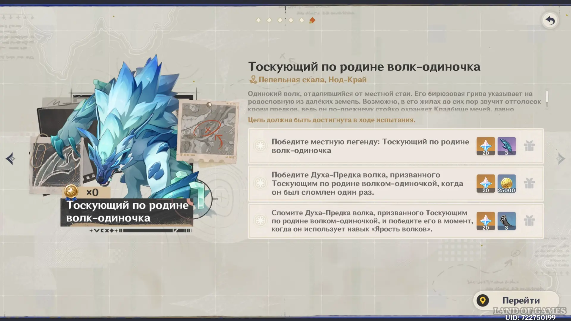В Genshin Impact Клык пустошей или местная легенда Нод-Края «Тоскующий по родине волк-одиночка» является мини-боссом Хроник доблести – волком с бирюзовой гривой, отдалившимся от стаи и осевшим на Пепельных скалах. В этом гайде мы разберем, как обнаружить и одолеть опасного монстра, собрав все медали испытаний, а также подскажем оптимальные отряды и тактику боя.