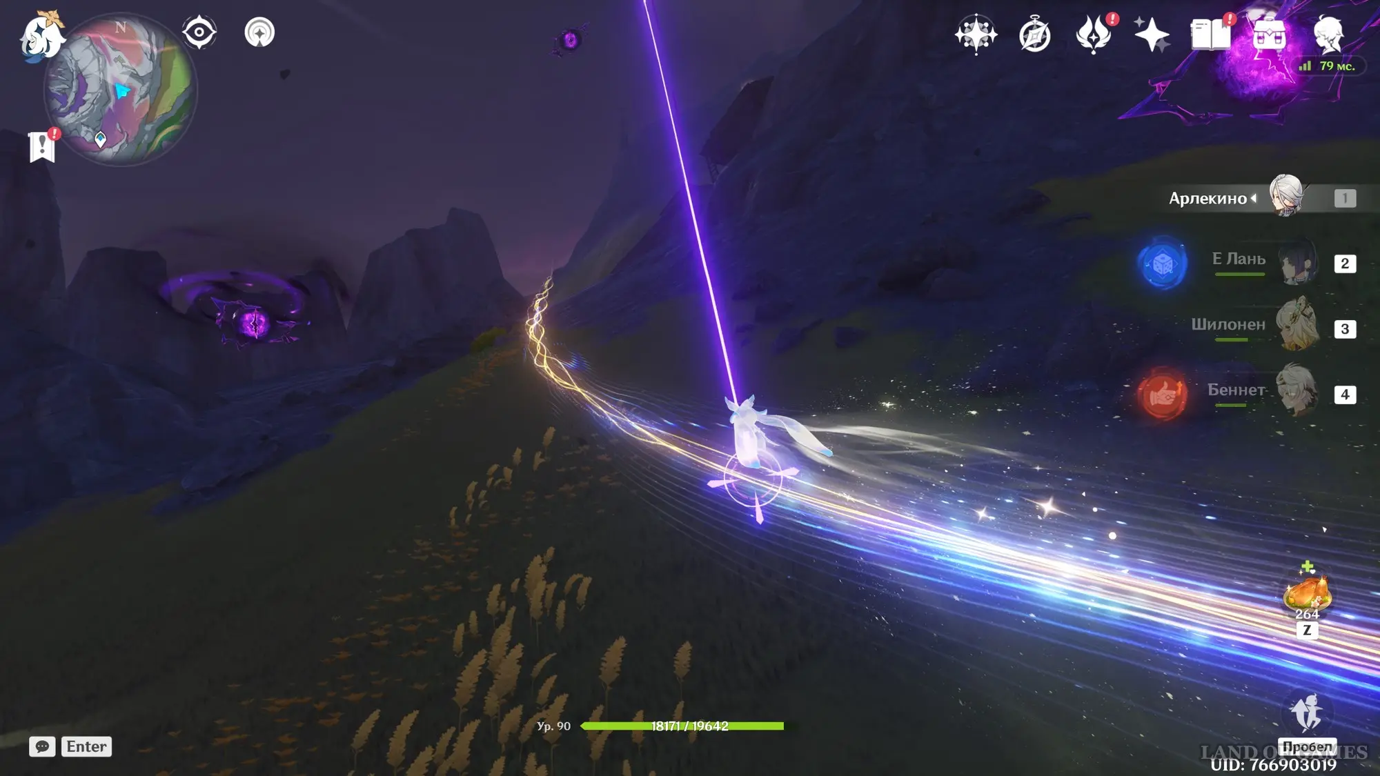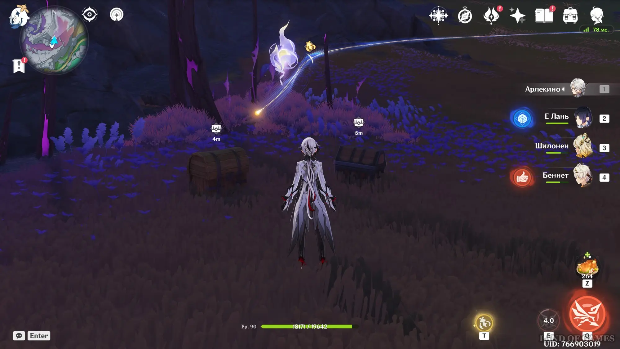 В небе при этом будет летать око погибели, которое изредка будет стрелять в вас снарядами (пока что победить его невозможно). Разобравшись с врагами, вы увидите, как око улетает прочь. Заберите содержимое обычного и богатого сундуков, а затем воспользуйтесь появившейся здесь лунной дорожкой, схватив по пути лунокул.